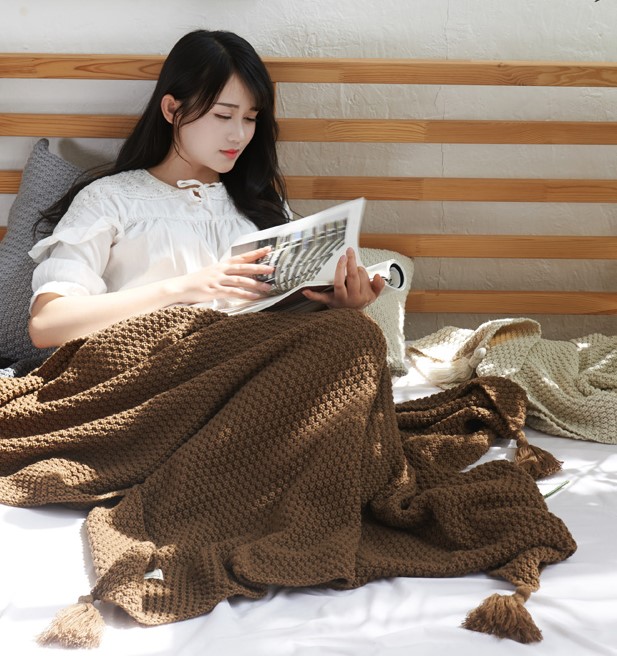 タッセル ブランケット 4色 ひざ掛け 100cm×150cm 無地 シンプル もこもこ ふわふわ 韓国 雑貨 北欧 大きい おしゃれ 可愛い 子供 大人 厚手 シングル 毛布 ラムウール 軽量 暖かい ベッド ソファー 椅子 ピンク グレー ホワイト 白 ブラウン