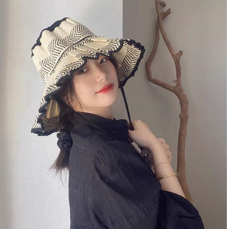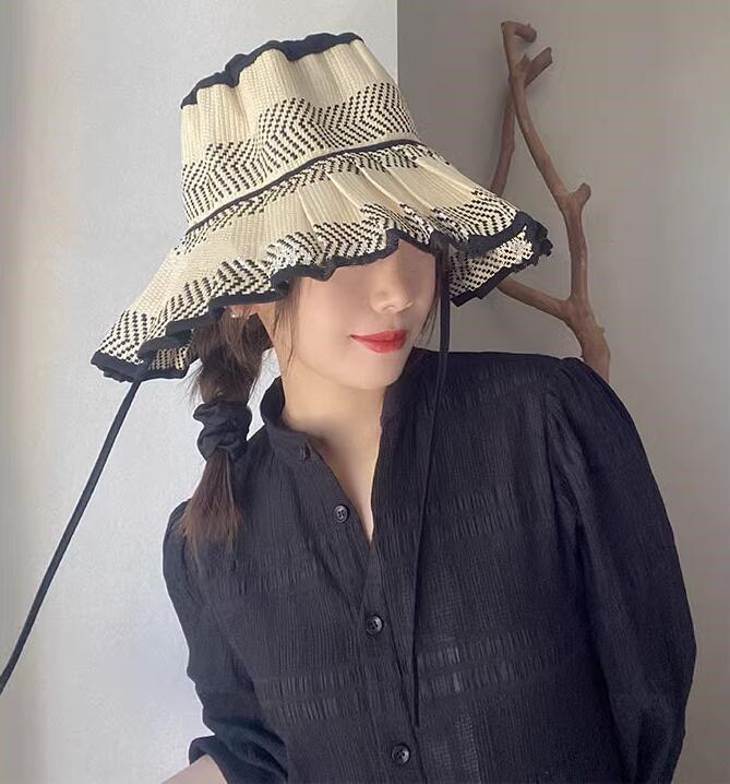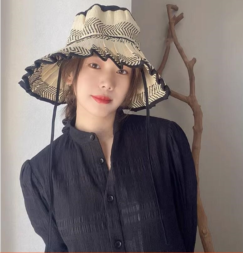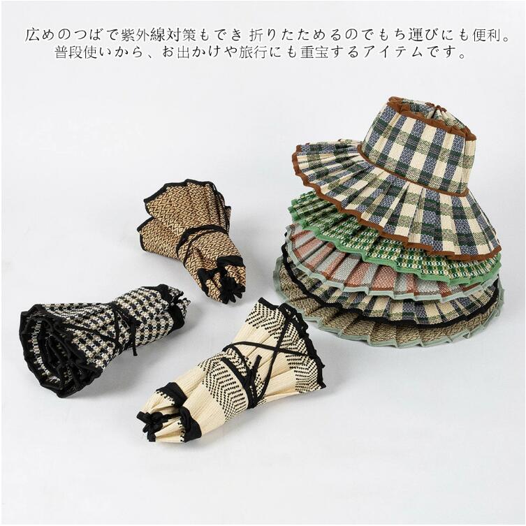 ストローハット折りたたみ つば広 中折