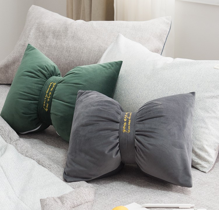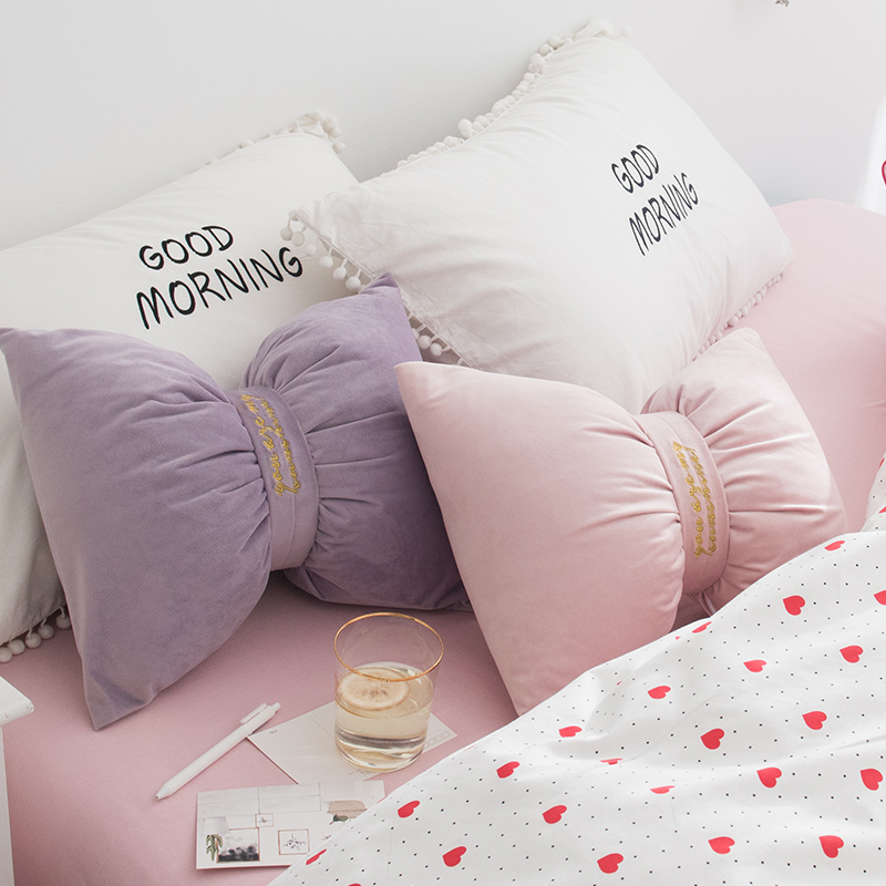 「ピンク/灰即納」リボン クッション 韓国 雑貨 インテリア おしゃれ ピンク グレー 白 ホワイト グリーン パープル ゴールド ロゴ 北欧 ソファー 可愛い シンプル ふわふわ ゆめ 高級感 パステル 姫系 ベッド 車 ディスプレイ 刺繍 子ども部屋