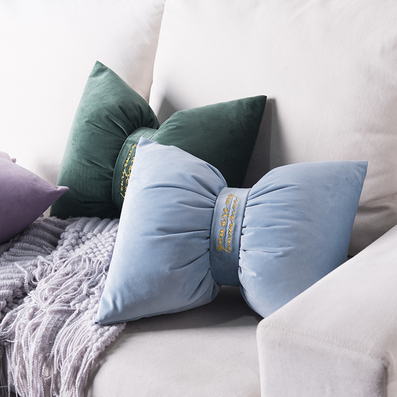 リボンクッション韓国雑貨インテリアおしゃれピンクグレー白ホワイトグリーンパープルゴールドロゴ北欧ソファー可愛いシンプルふわふわゆめ高級感パステル姫系ベッド車ディスプレイ刺繍子ども部屋