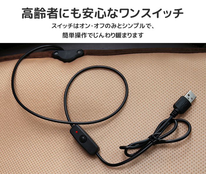● スイッチはオン・オフのみとシンプルで、簡単操作でじんわり暖まります。