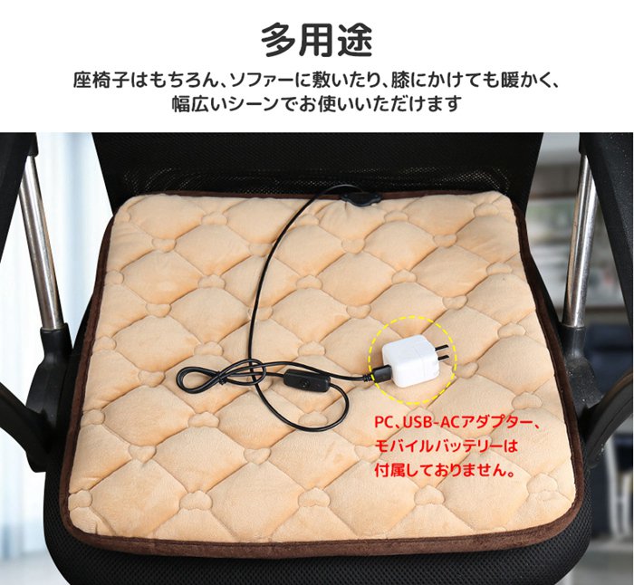 ホットマット 電気座布団 一人用 USB給電式 発熱マット ミニ ウォームパッド あったか 45×45cm 電気マット 電熱マット 温熱座布団 シートヒーター ケーブル長さ80cm 冬用品 室内