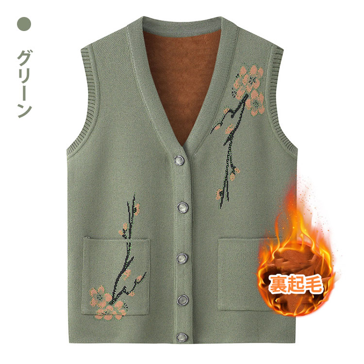 秋冬 おばあちゃん用裏起毛ニットベスト