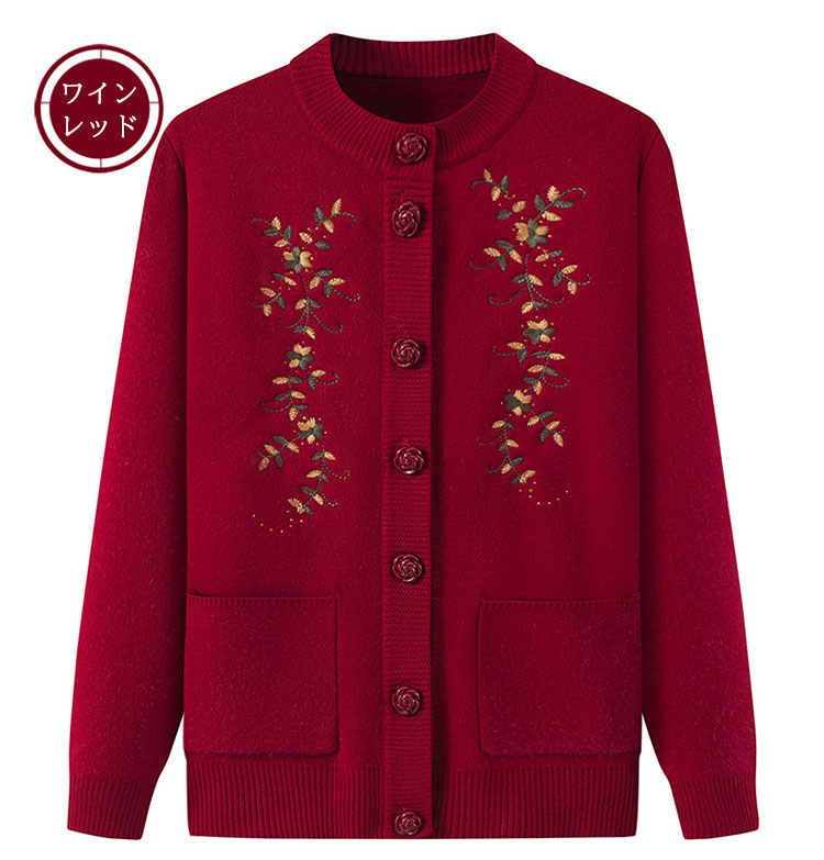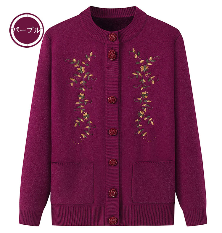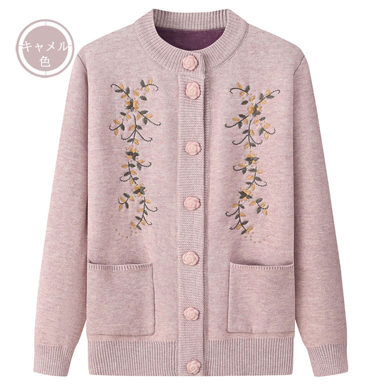 秋冬 おばあちゃん用裏起毛ニットカーデ