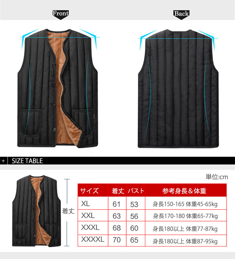 高齢者向け裏ボアベスト、冬に使用ルーム
