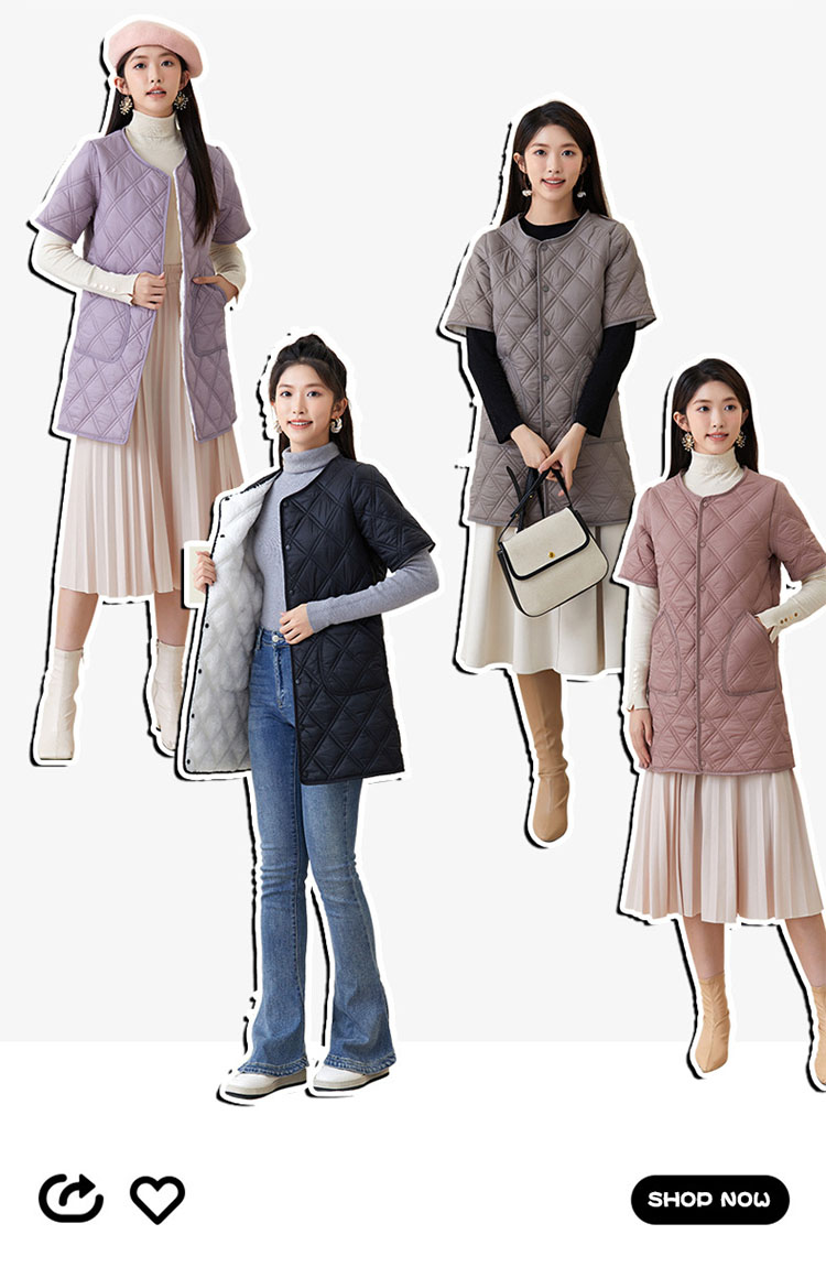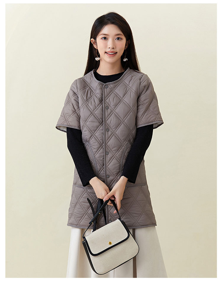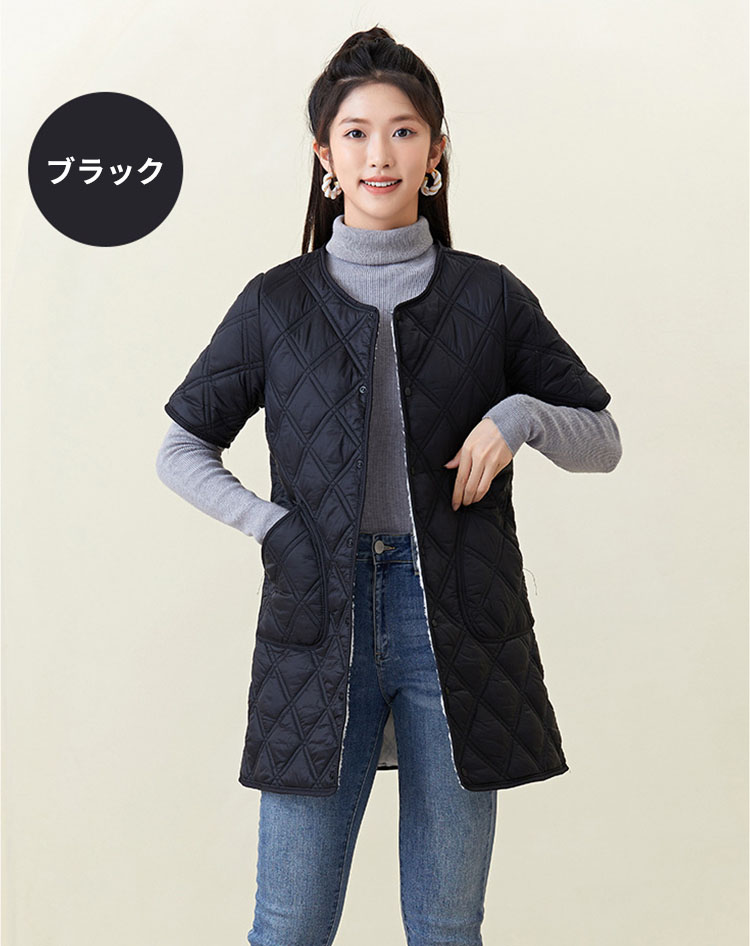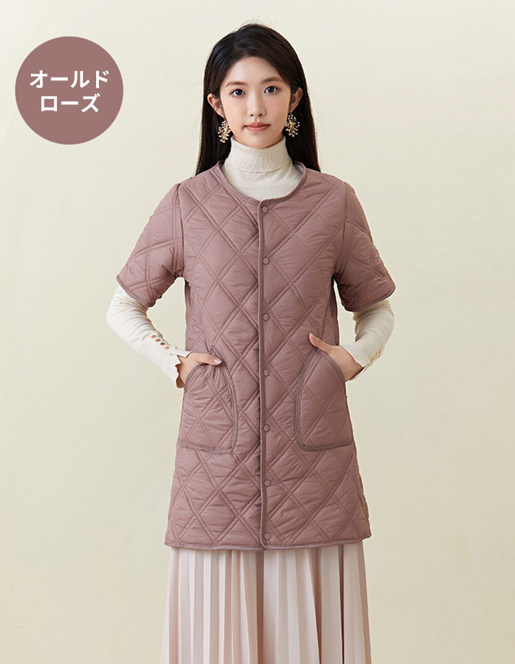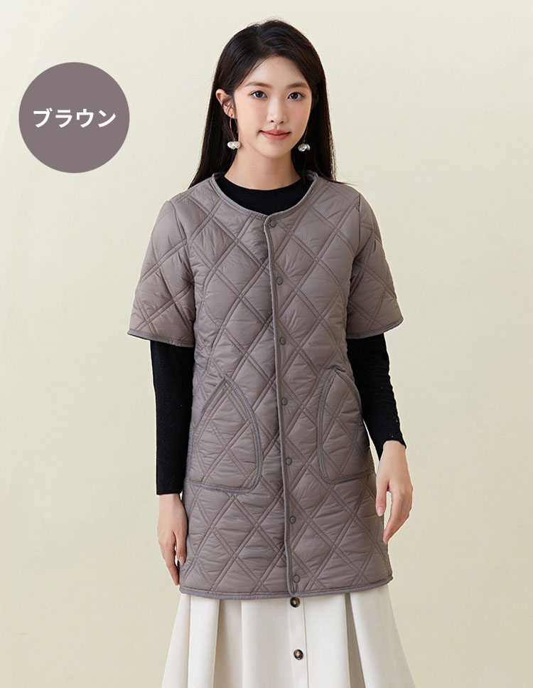 半袖ジャケット ロング丈 中綿ジャケッ