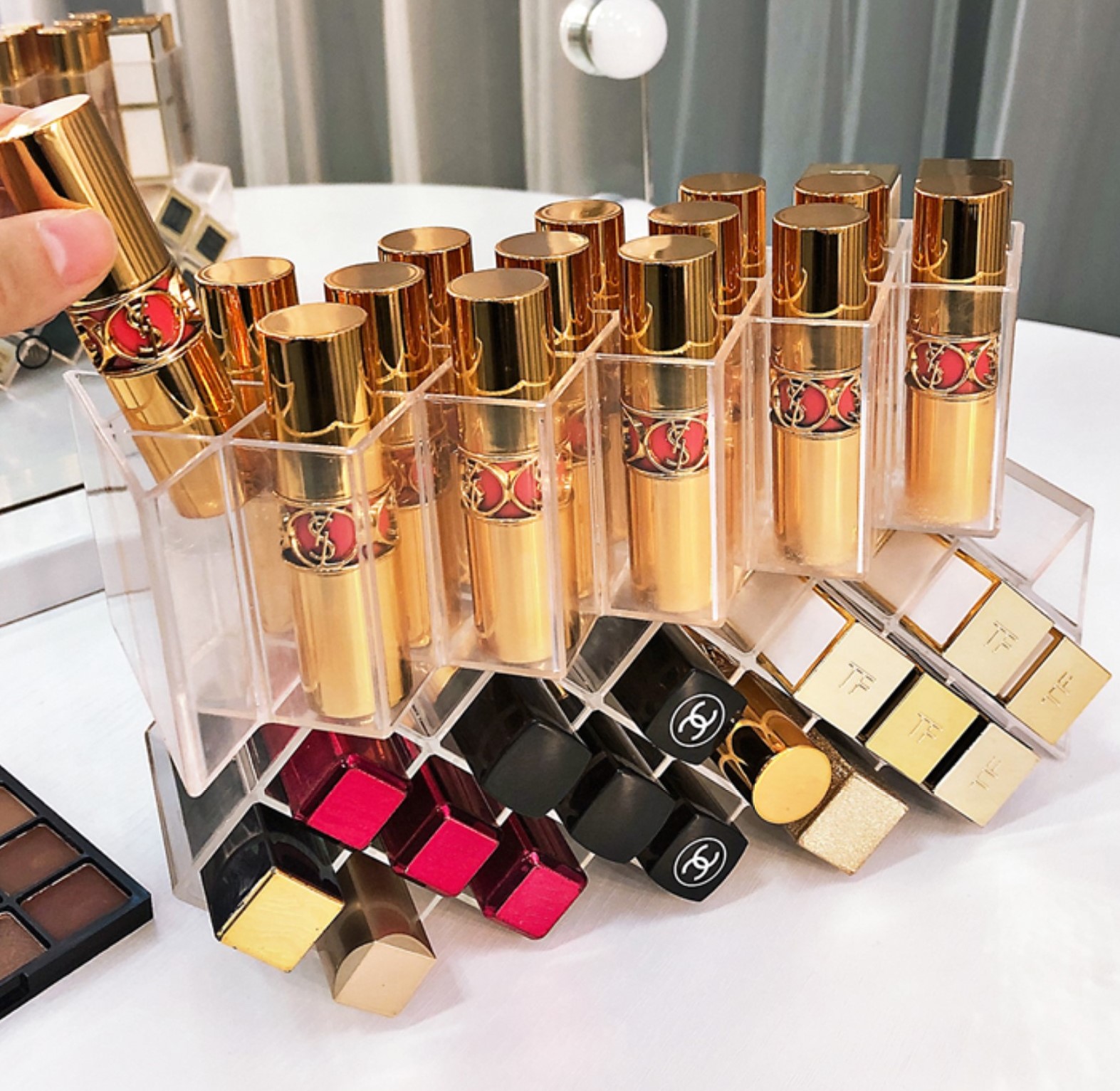 リップ収納口紅グロスケースディスプレイプレートクリア透明大きい大量韓国雑貨インテリアアンティークおしゃれ化粧品スタンド仕切り箱ボックスリップスタンドメイク道具リップホルダーアクリルケースコスメ可愛い