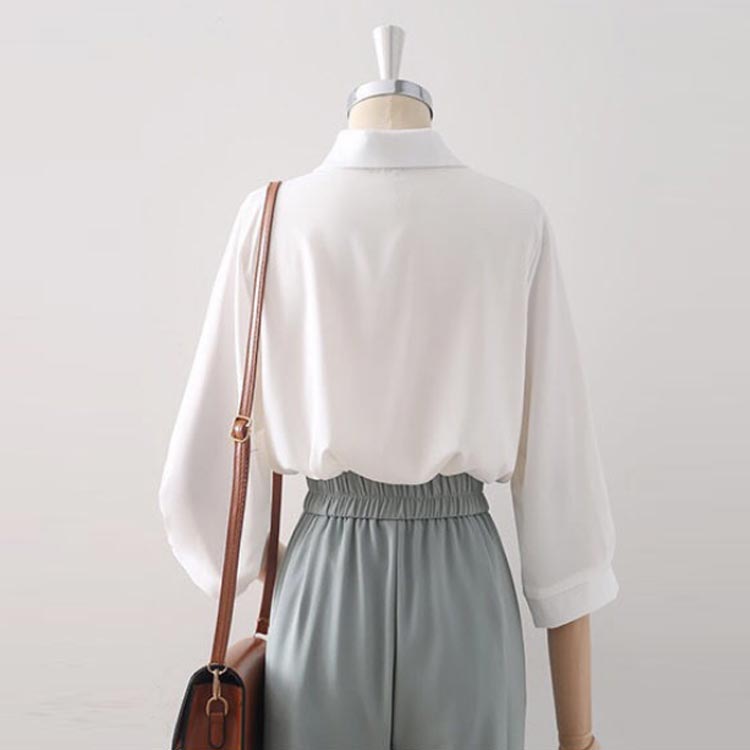 シアースリーブ ドッキングシャツ ボウタイシャツブラウス
