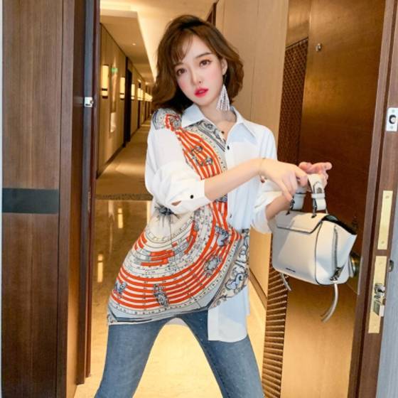 レトロの柄が個性的なシャツブラウスです!
