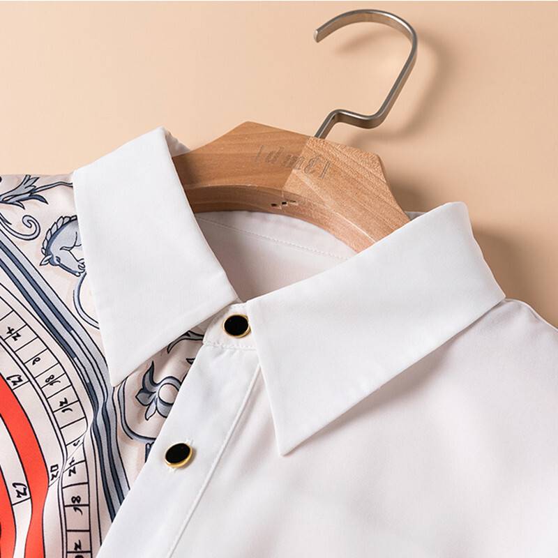 トップス レディース シャツ ブラウス 七分袖 柄 襟付き 個性的 レトロ 春 夏 秋 大人 かわいい 上品 きれいめ お洒落 シンプル カジュアル ナチュラル フェミニン