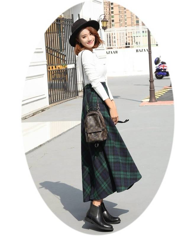 秋冬にぴったりな暖かみあるチェック柄のフレアロングスカート。