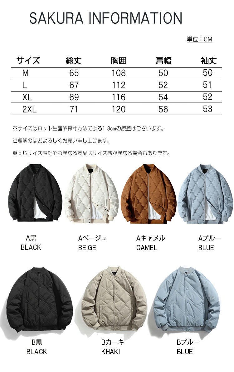 商品情報素材 表地:ポリエステル100% 裏地:ポリエステル100% 中わた:ポリエステル100%裏地 A-あり/B-裏ボアポケット サイドポケットあり生地の伸縮性 伸縮しません生地の透け感 なしカラー A-黒(black)、カーキ(khaki)、ブルー(blue) B-黒(black)、ベージュ(beige)、キャメル(camel)、ブルー(blue)サイズ M/L/XL(LL)/2XL(3L)サイズ表にご参考まで生産国 中国包装について 環境保護の観点から、「簡易包装」を推進しております明細書について 当店ではエコロジーと個人情報流出防止のため、ご指示の無い限り明細書を発行しておりません。