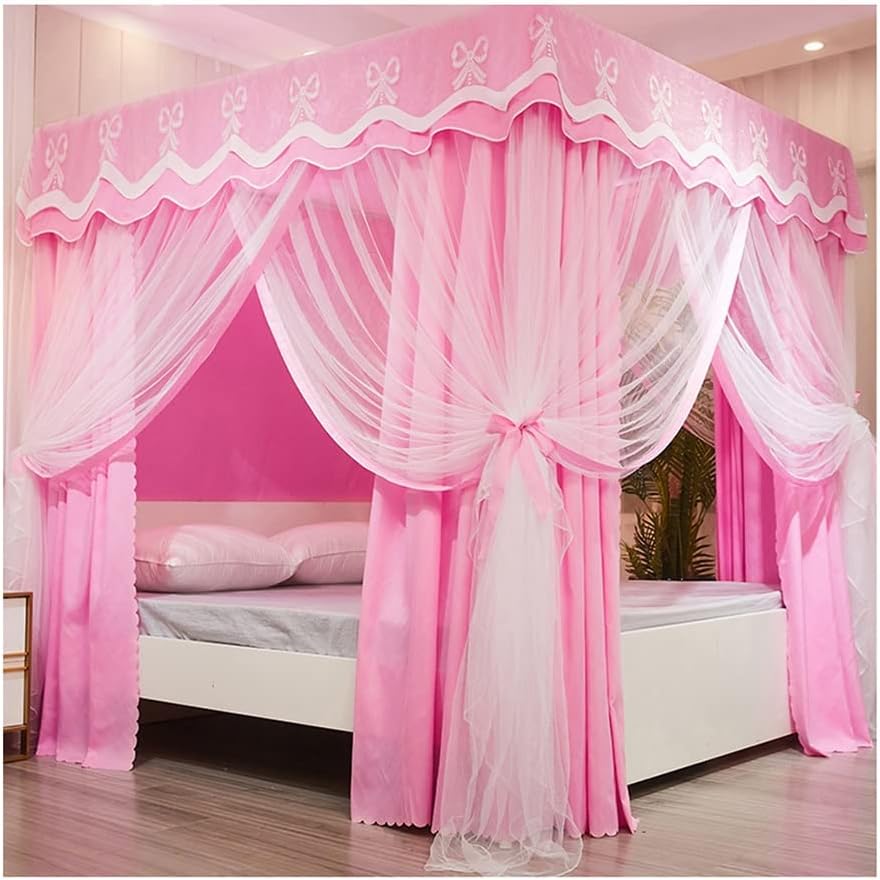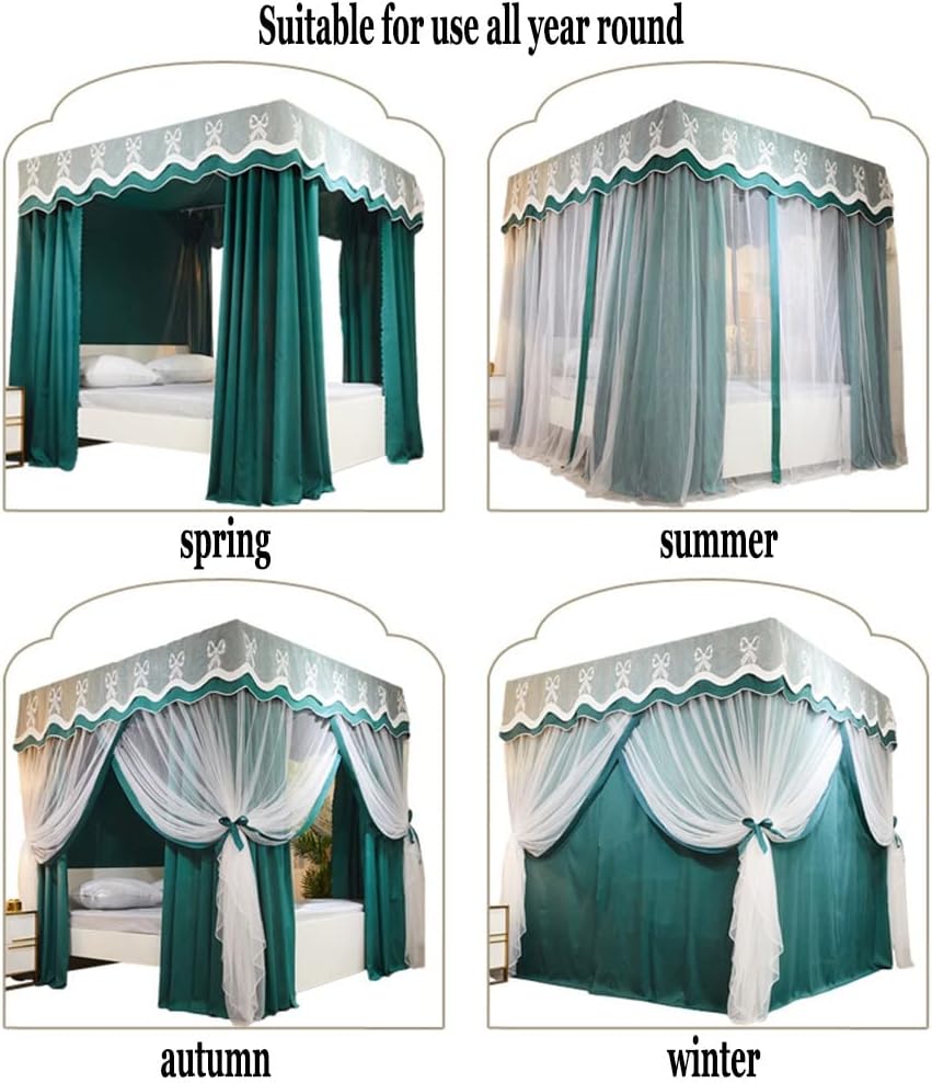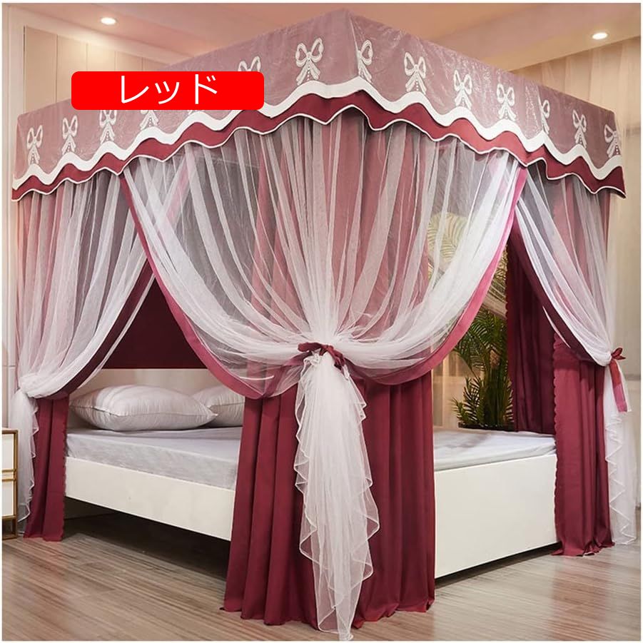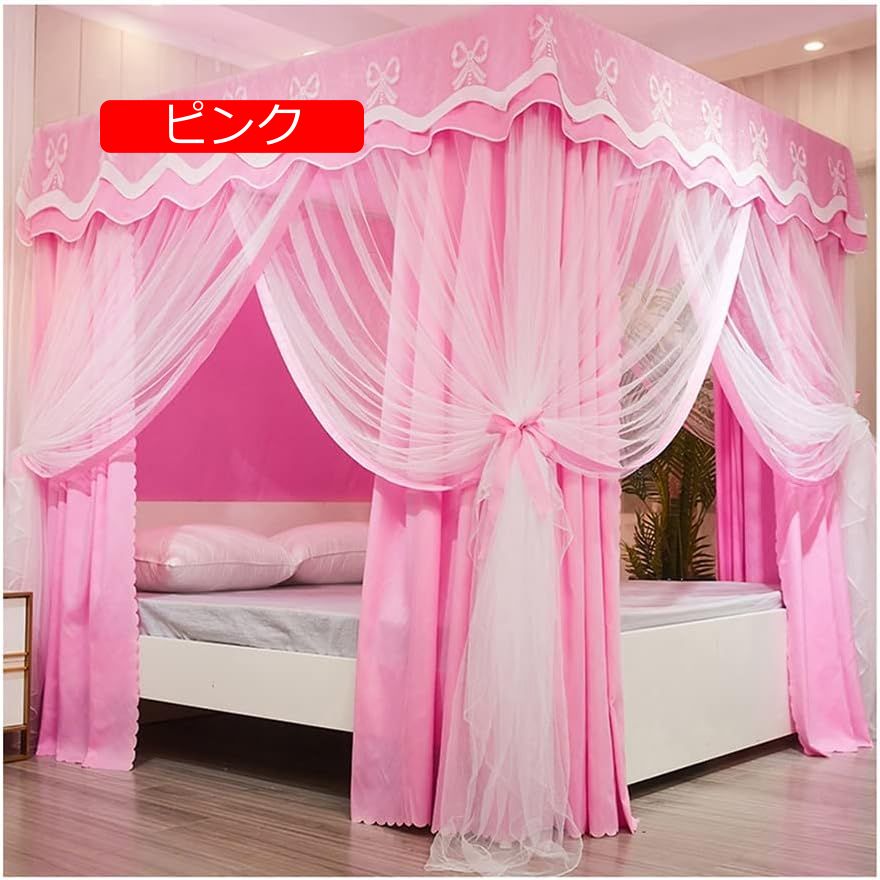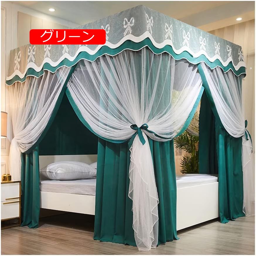 天蓋 4コーナーポストベッドキャノピー蚊帳、春夏秋冬の防塵遮光ベッドカーテン、女の子のシングルダブルベッドの寝室の装飾