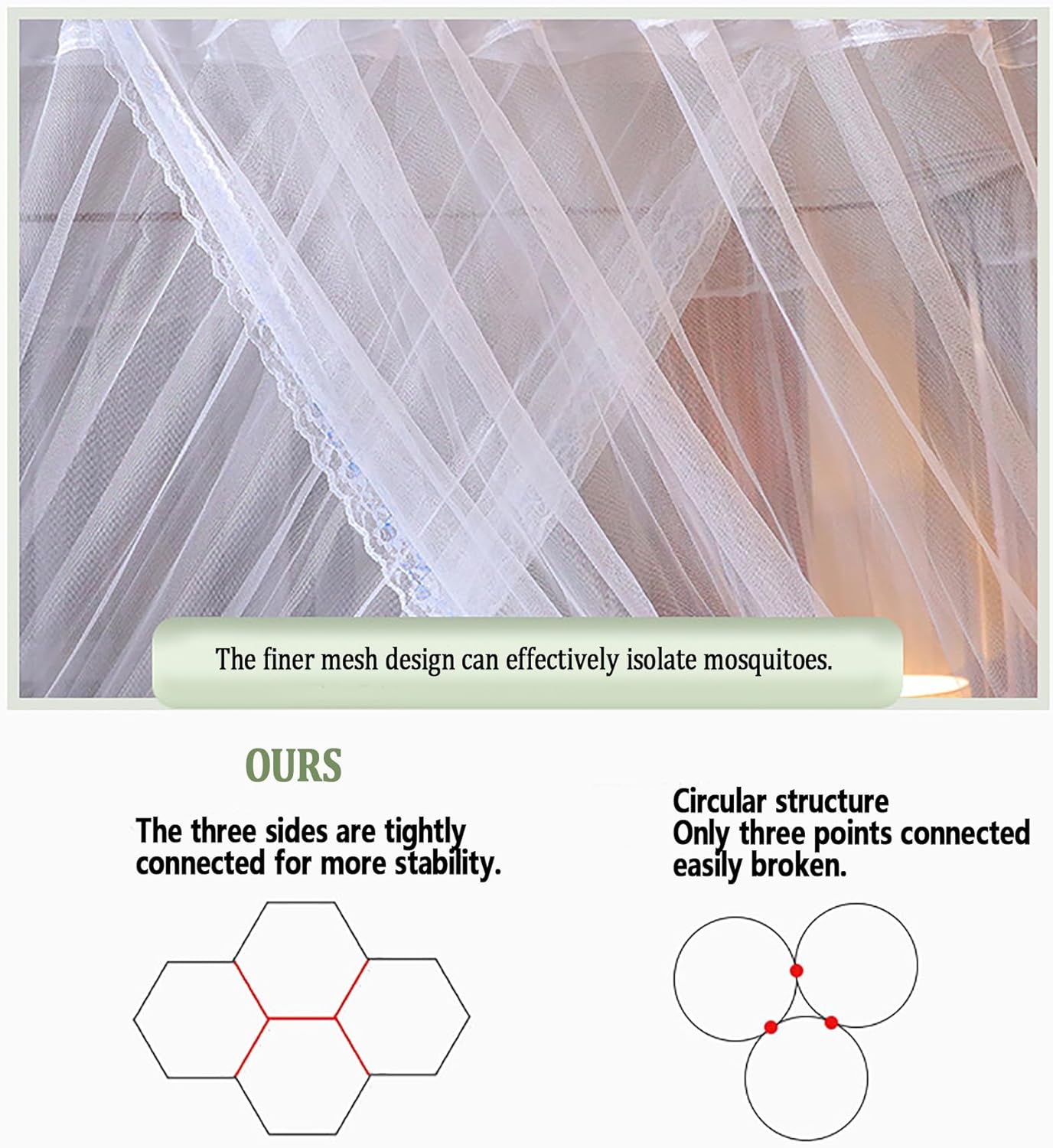 1. エレガントでシンプルなデザイン。 フリルレースと3つの開口部を備えた天蓋付きベッドカーテンは、ロマンチックでスタイリッシュな睡眠空間を作り出し、寝室に魅力的なタッチを加えます。