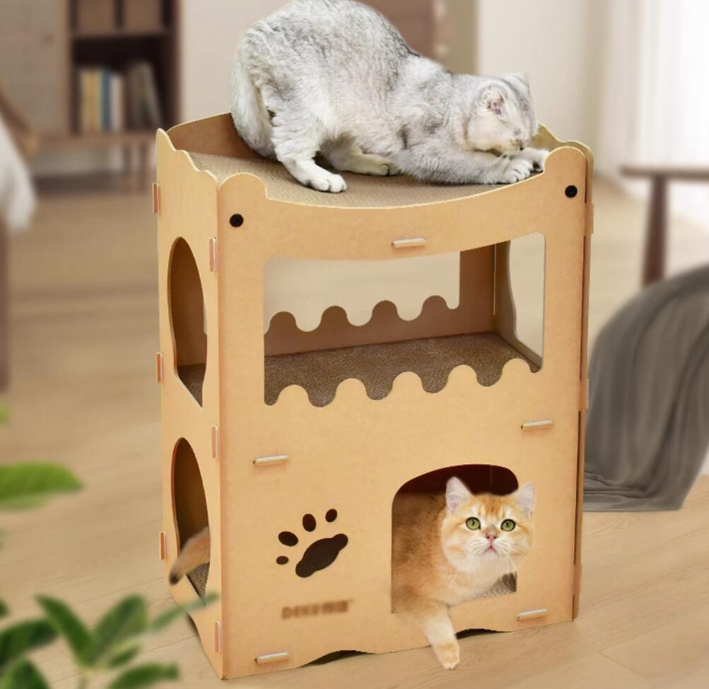 2色 猫ハウス 猫小屋 段ボール 猫スクラッチボド 研削爪 猫ペット キャットダンボールハウス 猫用爪とぎ ペットハウス 通気 爪とぎ兼ベッド 爪研ぎハウス ストレス解消 通気 多頭飼い