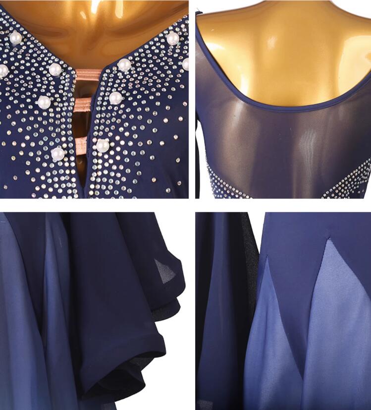 タンゴ、ワルツ、などのスタンダード、サンバ、ルンバなどのラテン、モダン、フラメンコなどにもご使用いただけますので、ストレッチ素材で動きやすく、練習、発表会、競技、舞踏踊りなどにおすすめ、社交ダンス衣装として、またお値段を考えると縫製も丁寧だし、生地もしっかりしていてデザインも素敵、華やかさを演出できる魅力的な衣装です。