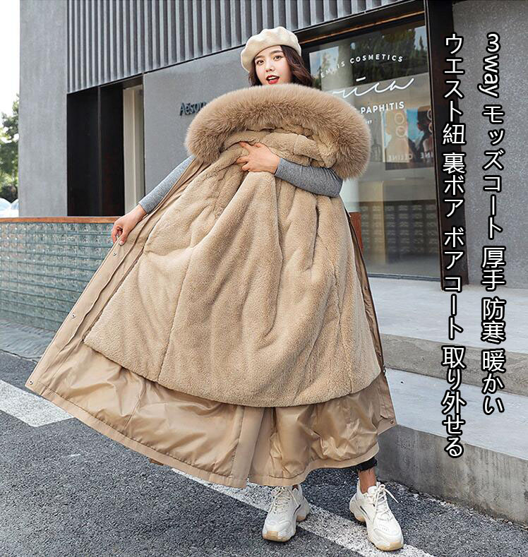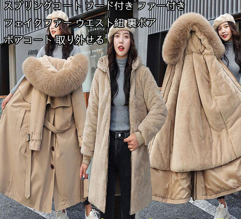 激安 3WAYコートトレンチコート スプリングコート 裏ボアコート アウター ロングコート 3way フード付き 5色 袖口リブ 冬服 アウター フェイクファー ウエスト紐 M~6XL モッズコート