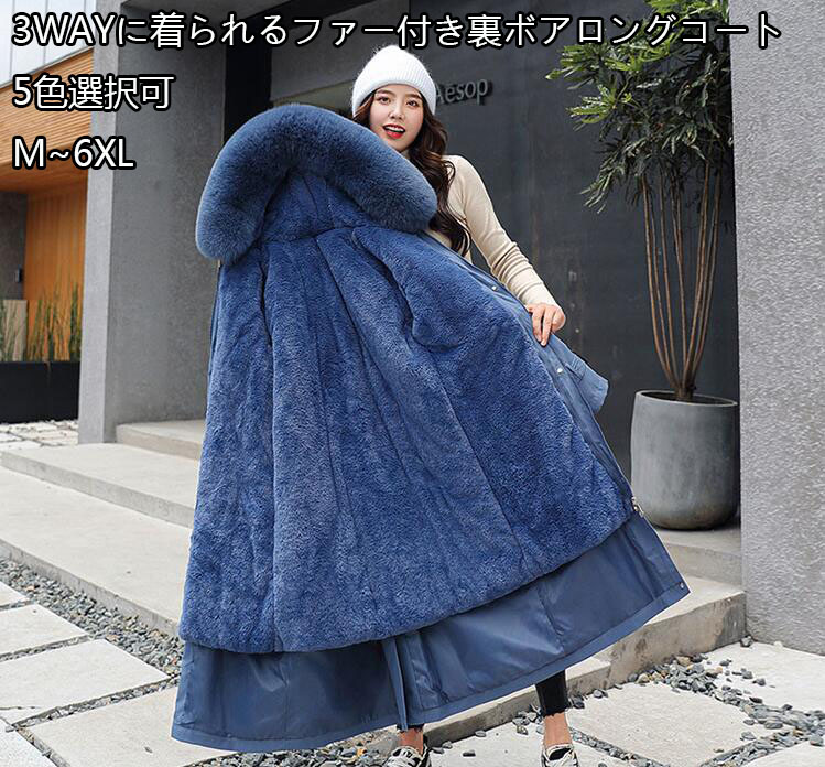 3WAYに着られるファー付き裏ボアロングコート