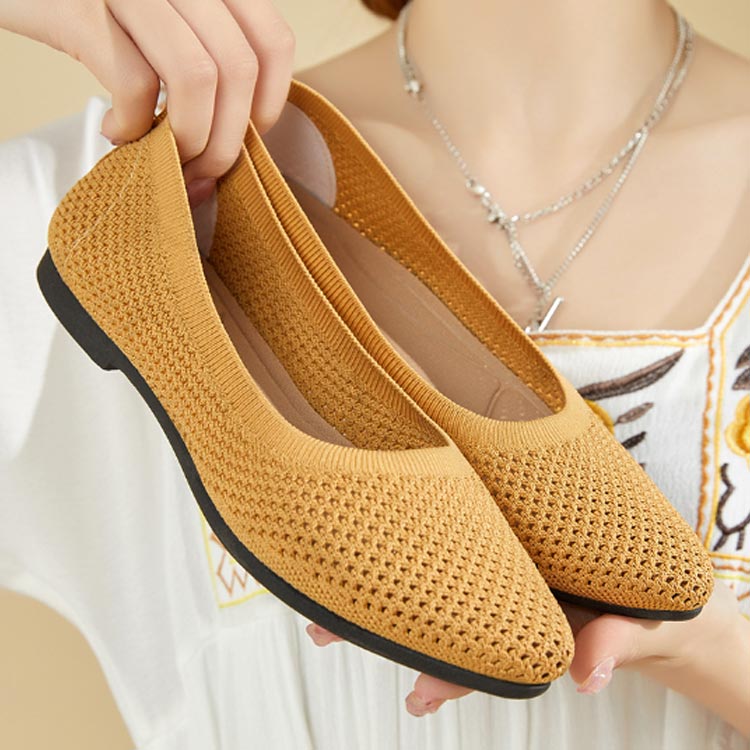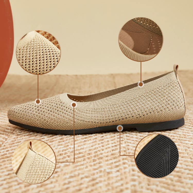 柔らかいニット素材で履きやすくて、長時間履いてもリラックスが感じるフラットシューズです。