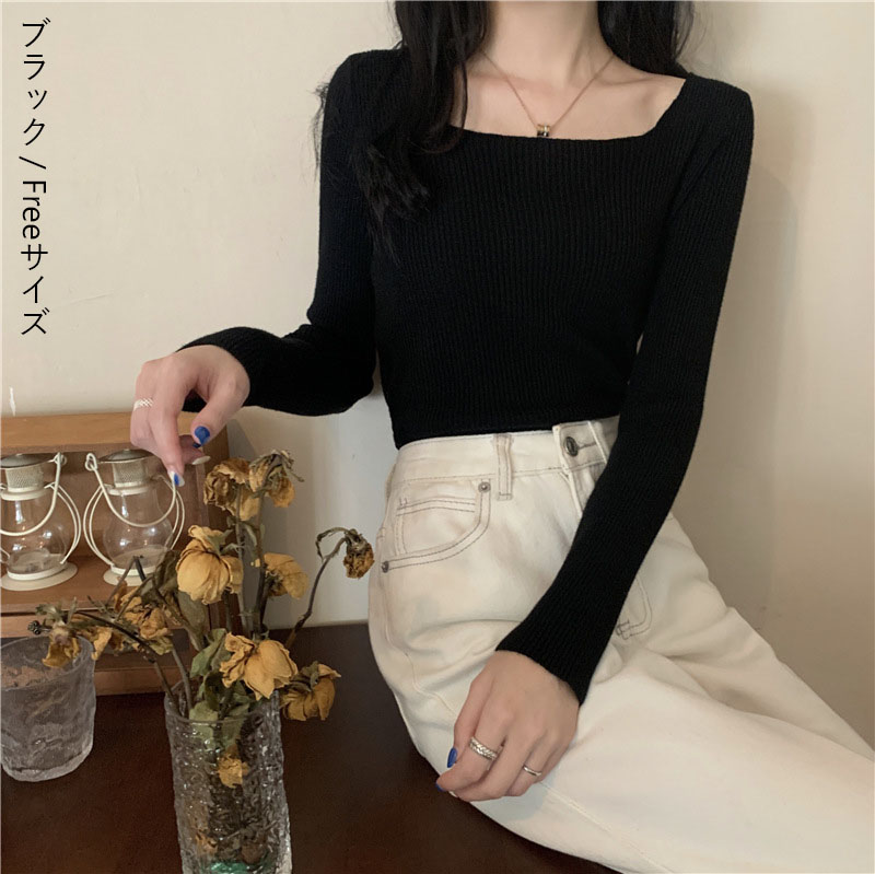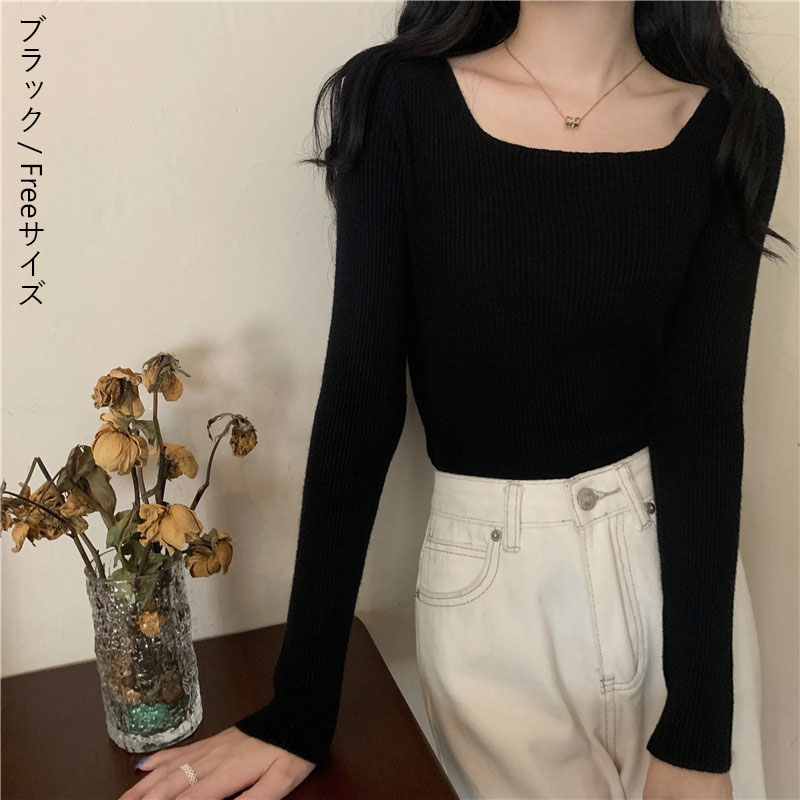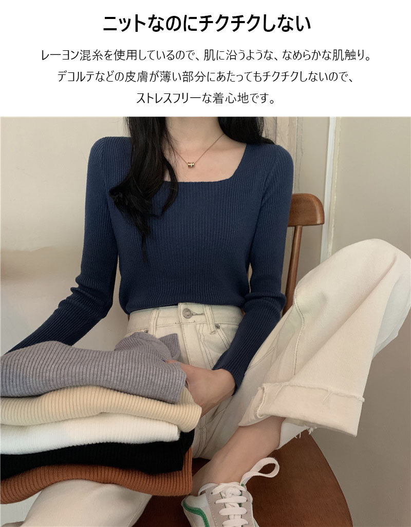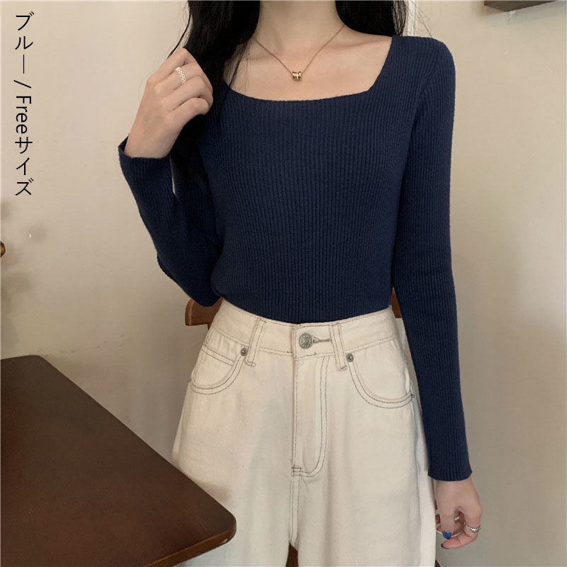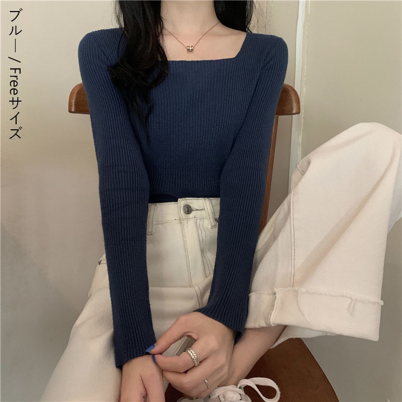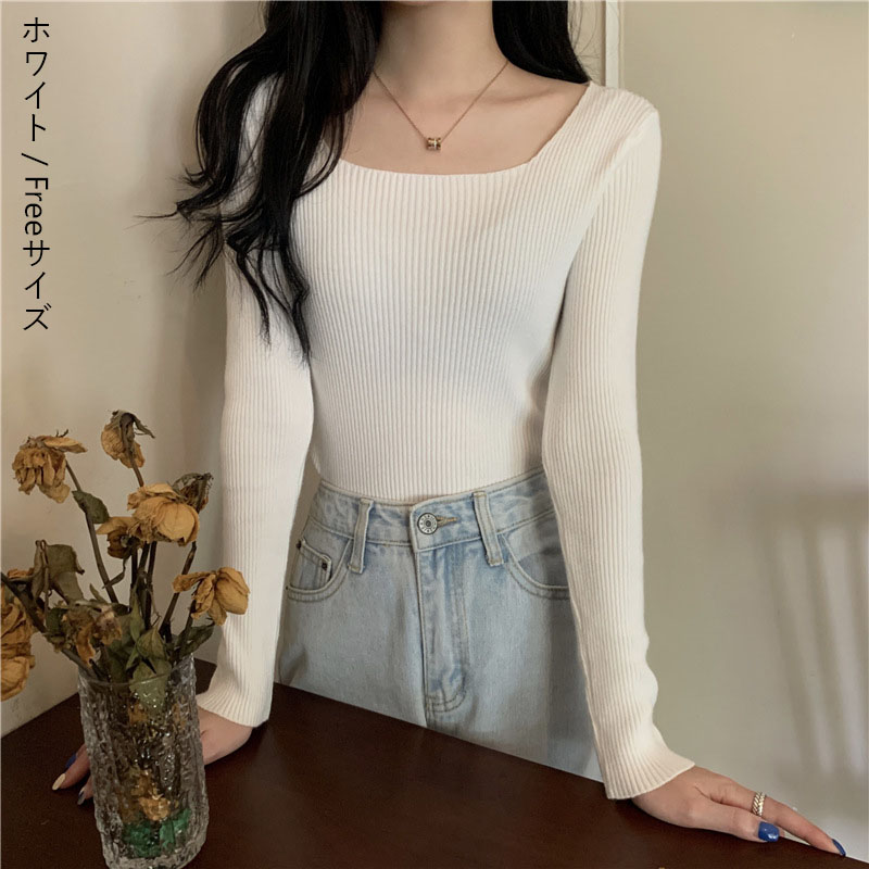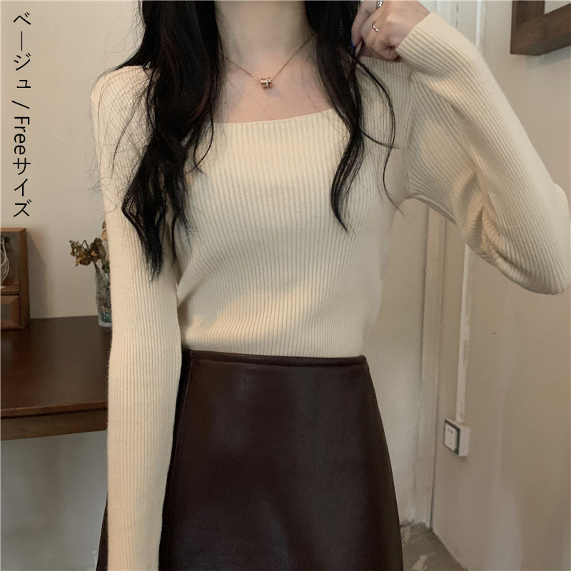 リブ ニット 無地 レディース トップ