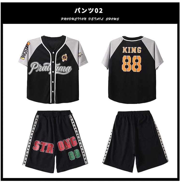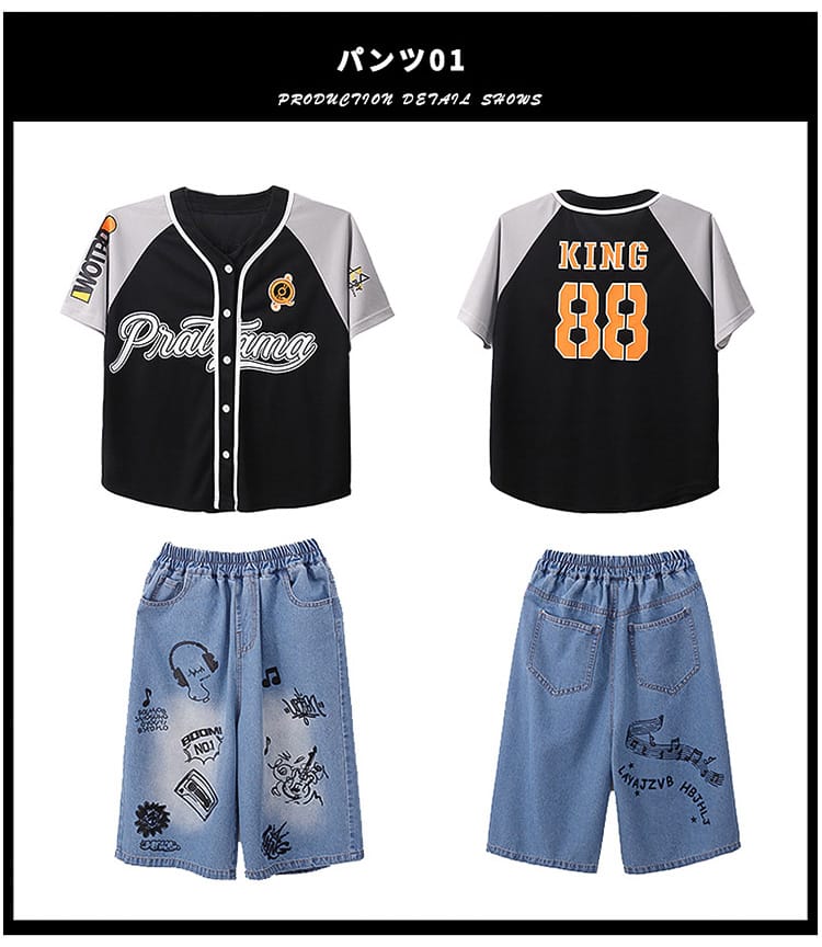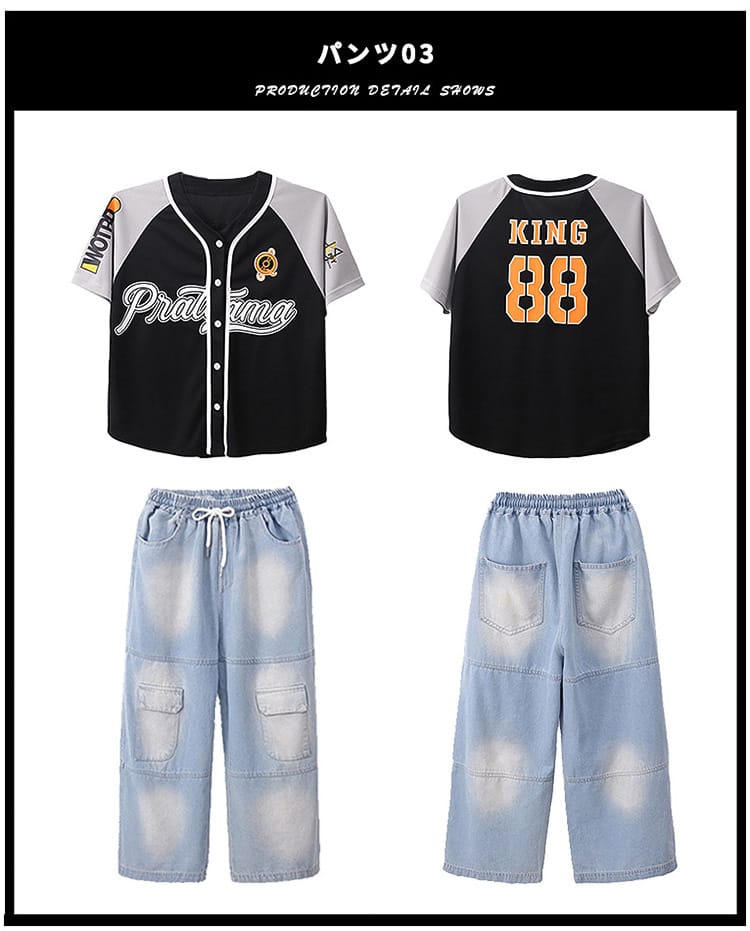 ベースボールシャツ パンツ 青 黒 キ