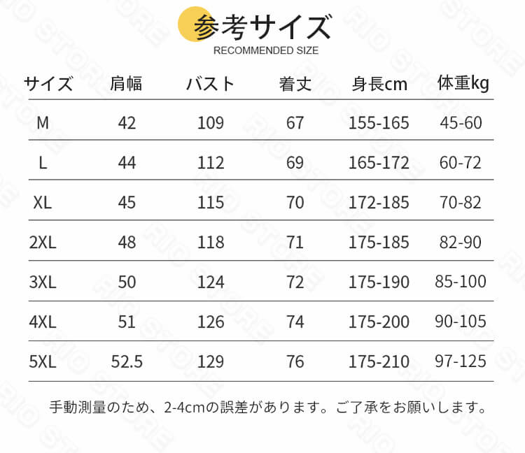 Key1: M/165cm L/170cm XL/175cm 2XL/180cm 3XL/185cm 4XL/190cm 5XL/195cm