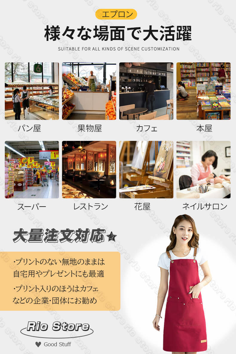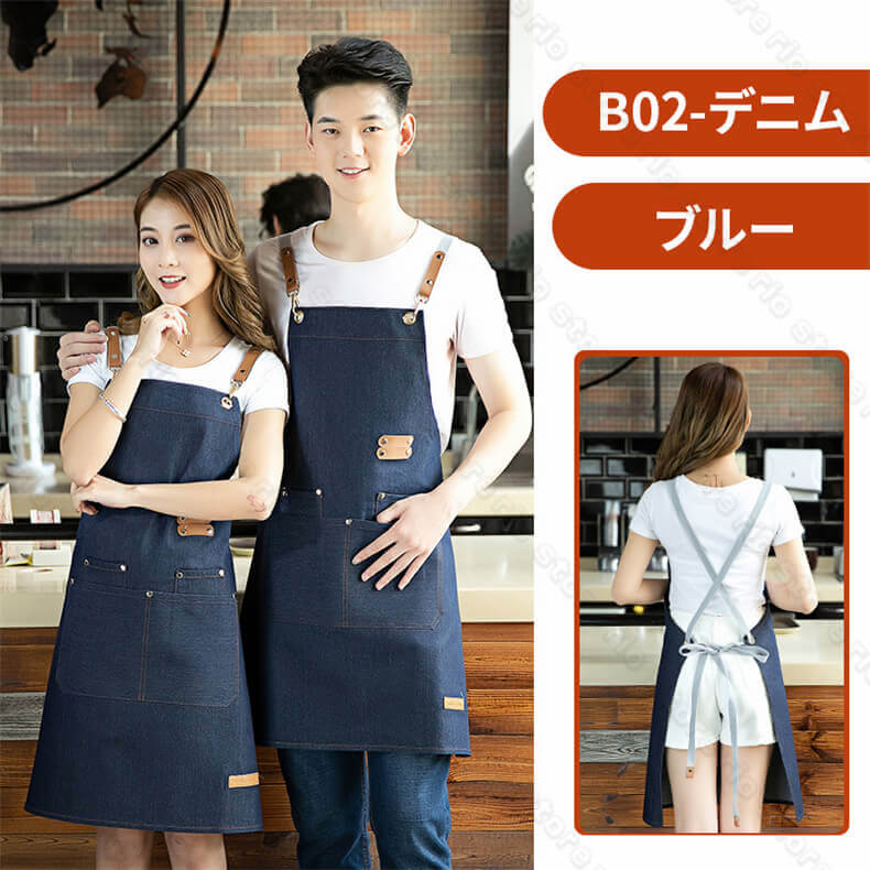 無料プリント入り エプロン デニム キ