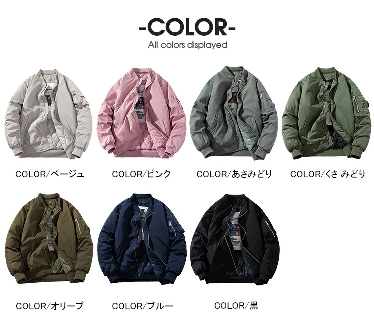 商品名 MA-1 ジャケット メンズ 中綿ジャケット フライトジャケット ミリタリージャケット レディース MA1 ブルゾン 防寒 アウター 中綿 暖かい 大きいサイズ 作業着 厚手 スタジアムジャンパー カジュアル 秋冬 冬服 中綿入り ユニセックス アメカジ バイク