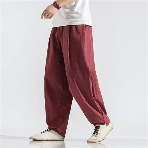 綿100% ワイドパンツ メンズ パンツ メンズ 長ズボン 春 夏 秋 冬 夏物 カジュアルパンツ シンプ 無地 ロングパンツ サルエル ゆったり