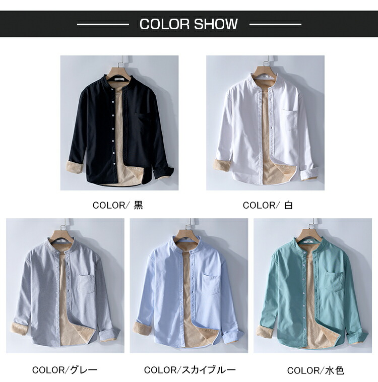 ※お客様のご覧になられますパソコン機器及びモニタなどの違い、また室内、室外での撮影により実際の商品素材の色と相違する場合もありますのでご了承下さい。商品情報商品名 ボアシャツ素材 コットン100%カラー 黒 白 グレー スカイブルー 水色サイズ 各サイズの寸法については画像のサイズ表にご参照ください。生産国 中国包装について 環境保護の観点から、「簡易包装」を推進しております明細書について 当店ではエコロジーと個人情報流出防止のため、ご指示の無い限り明細書を発行しておりません。