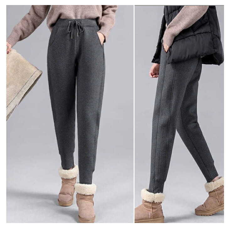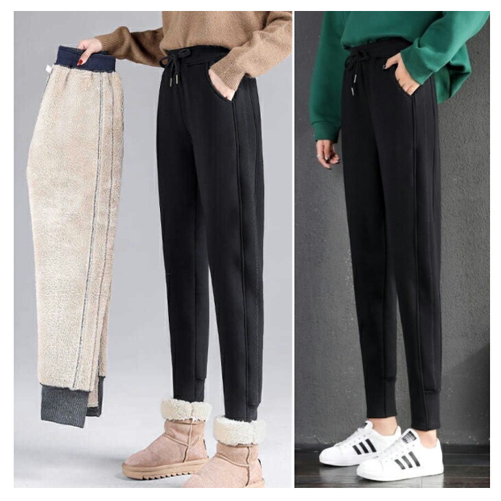 裏ボアあったかパンツ ボトムス 真冬 防寒 裏起毛 ジョガーパンツ トラックパンツ ブラック ダークグレー 大きいサイズ ウエスト ゴム レディース