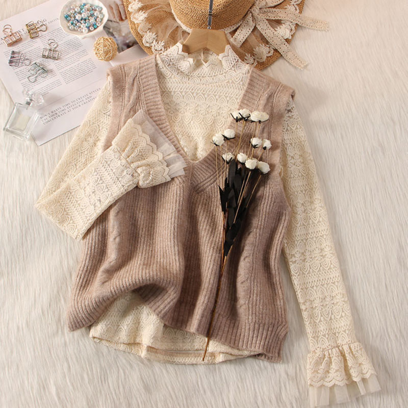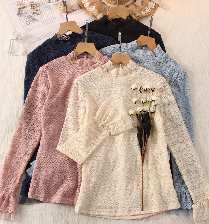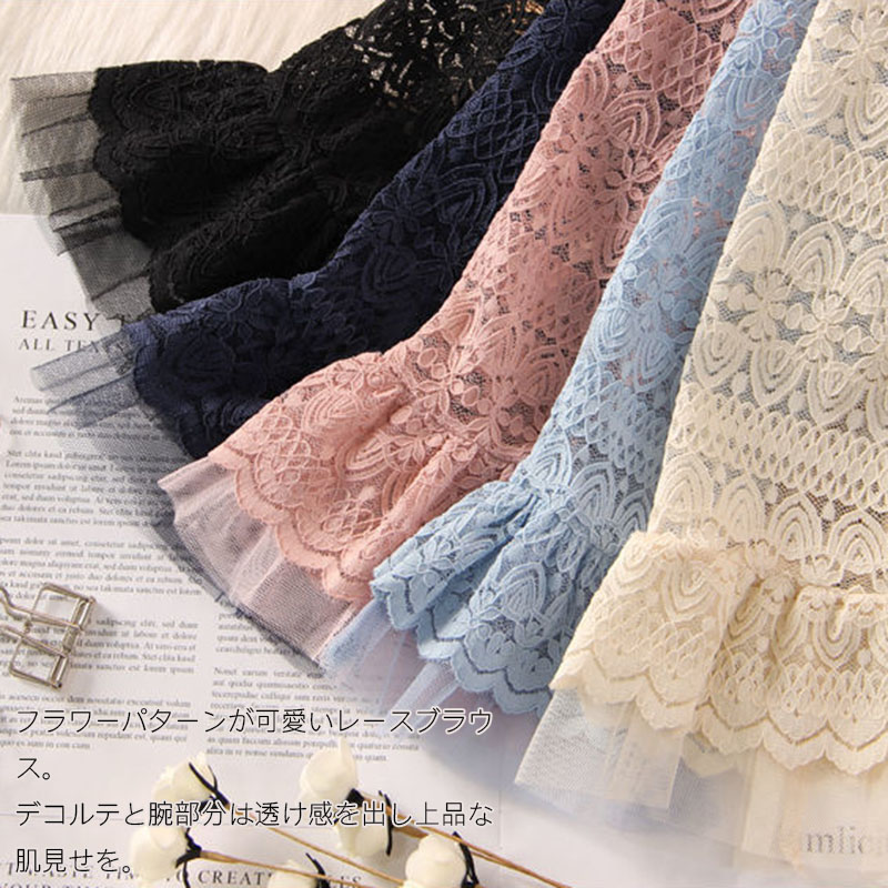 総レースブラウスシャツハイネック 花柄