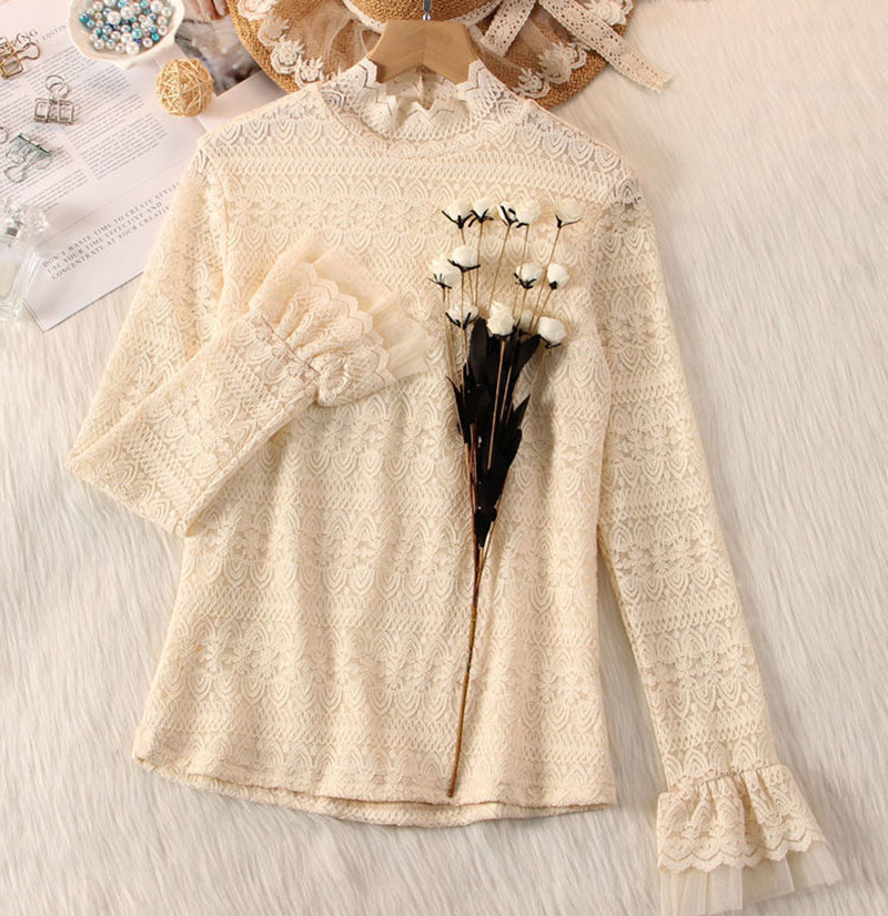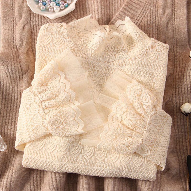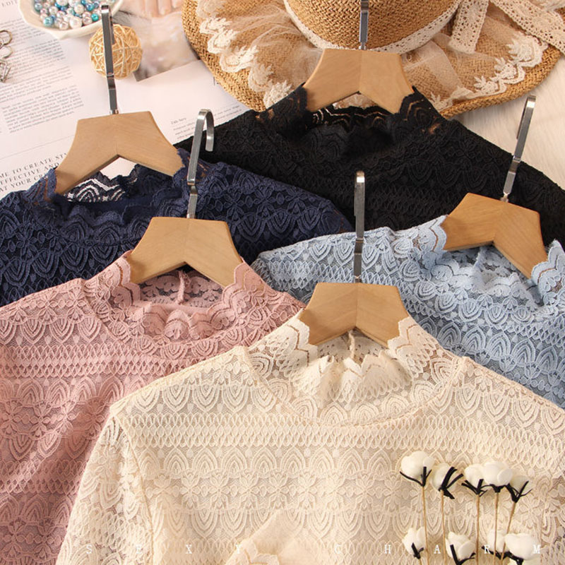 総レースブラウスシャツハイネック 花柄