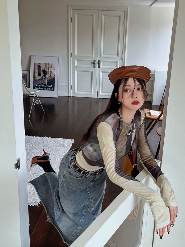 シアースリーブ ドッキングシャツ ボウタイシャツブラウス