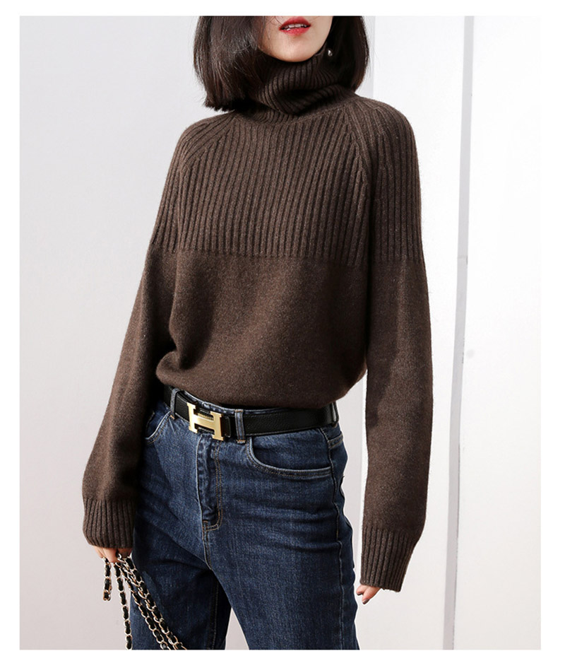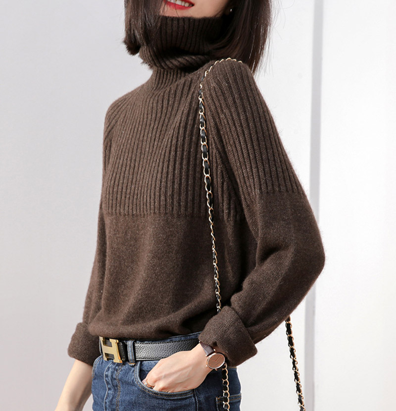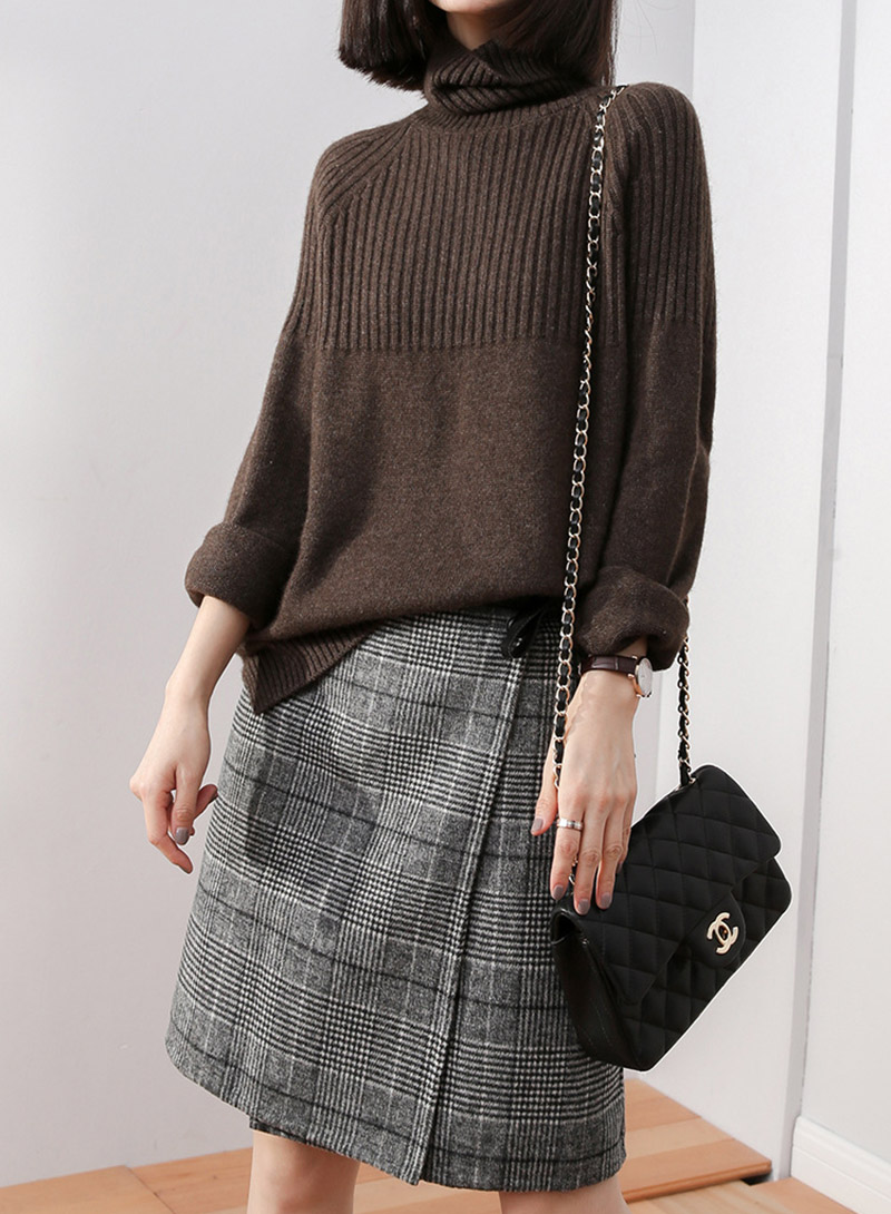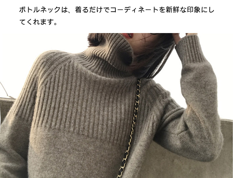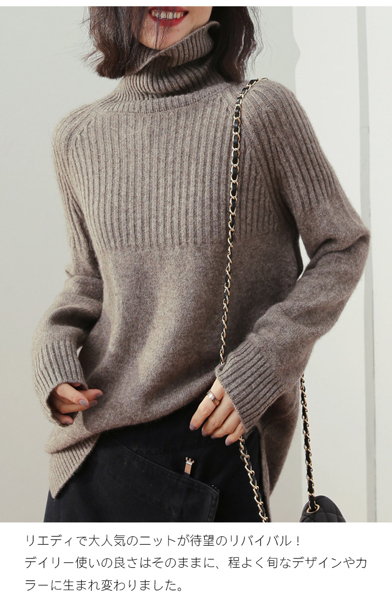 ニット トップス ハイネック リブニッ