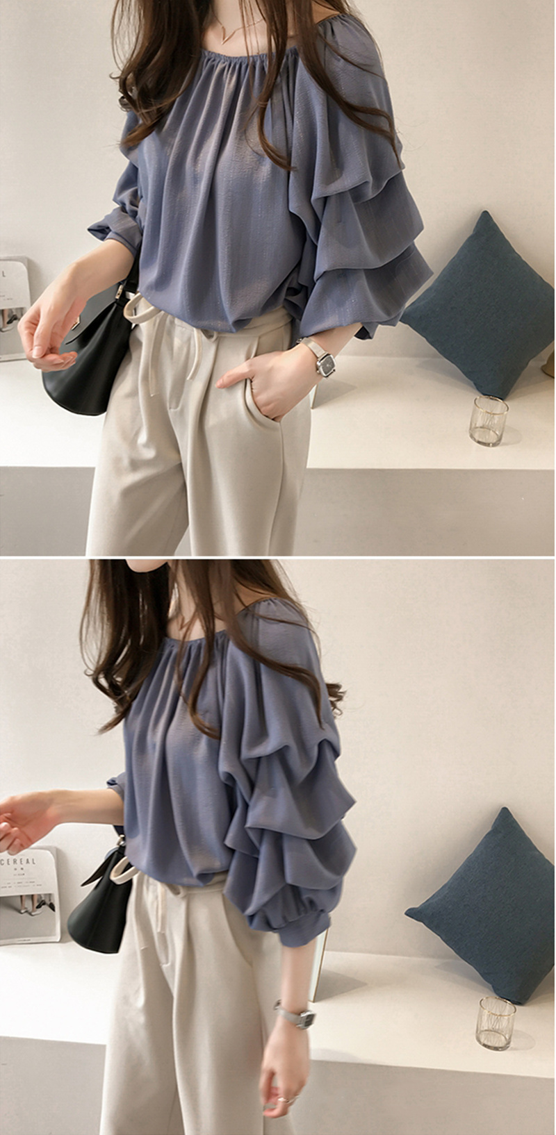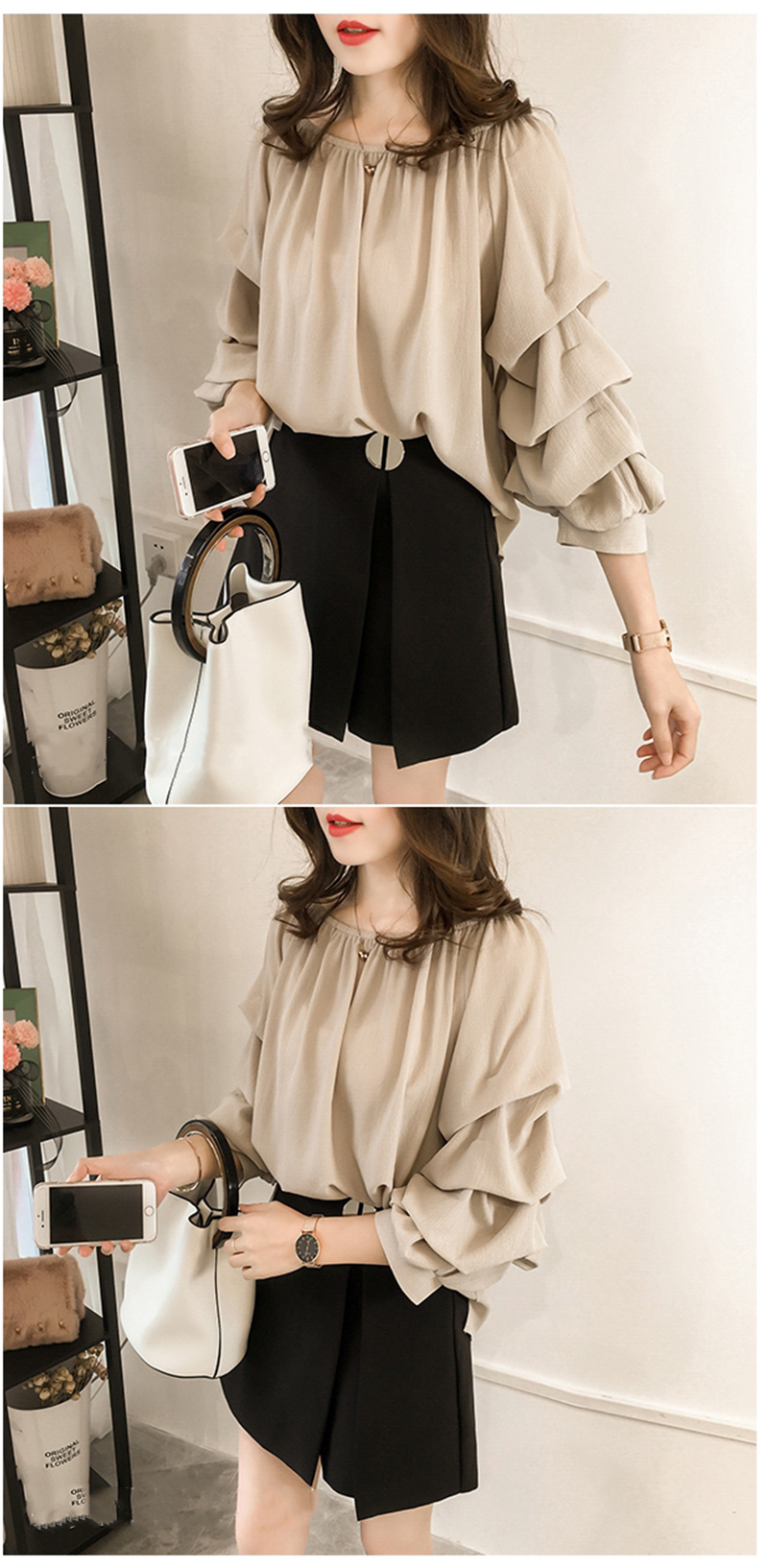 シフォンブラウス シアーブラウス ボリューム袖