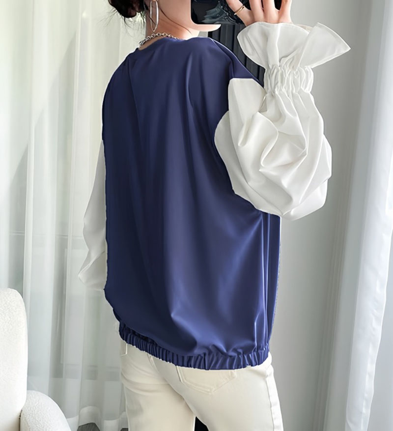 シアースリーブ ドッキングシャツ ボウタイシャツブラウス