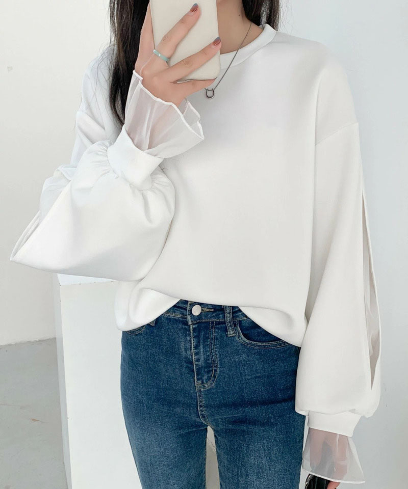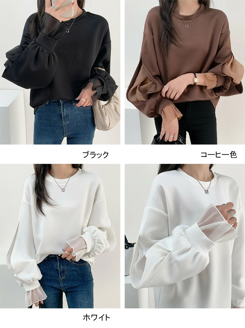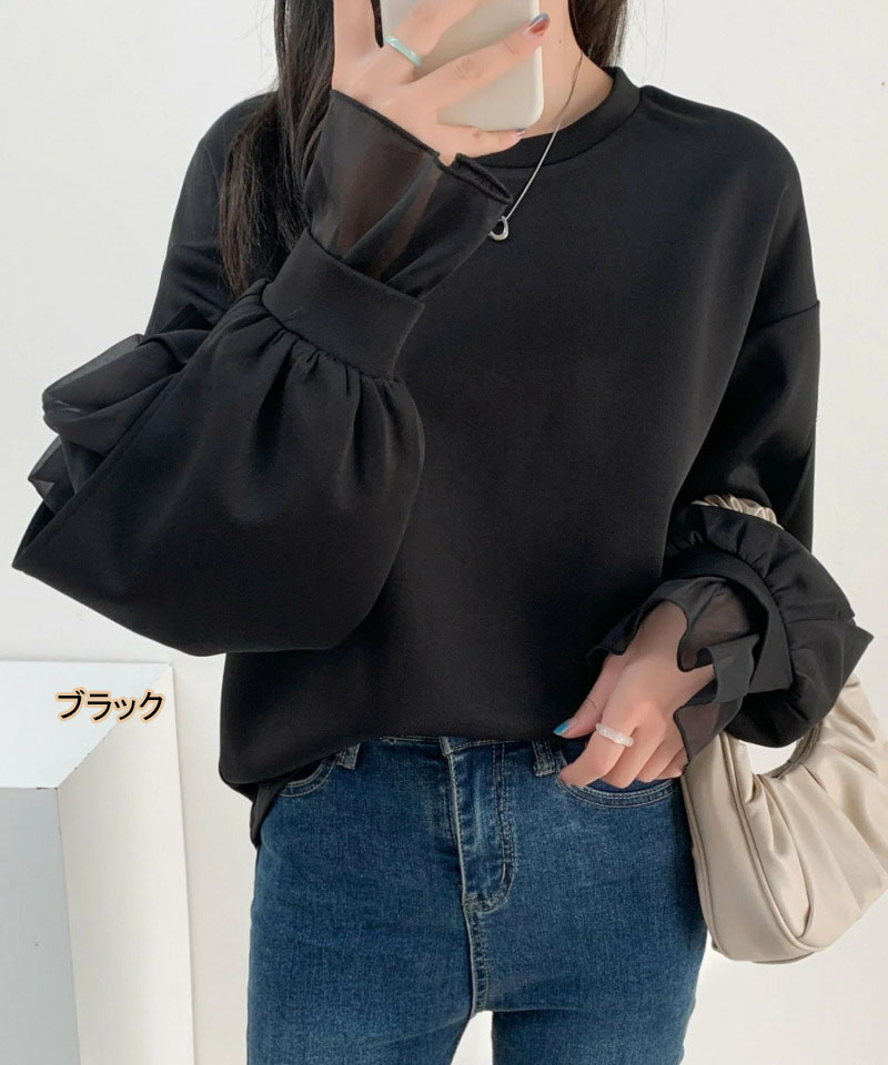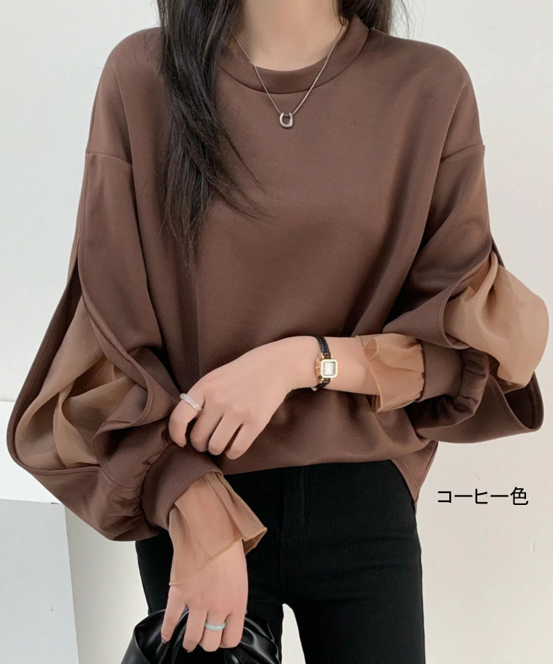 シフォンブラウス シアーブラウス ボリューム袖