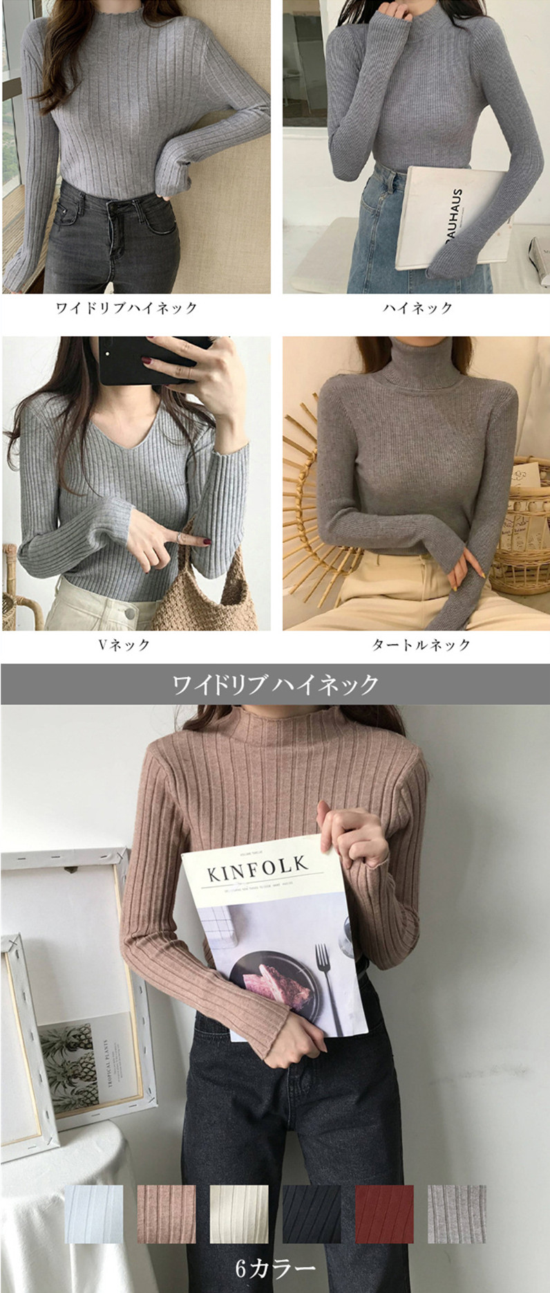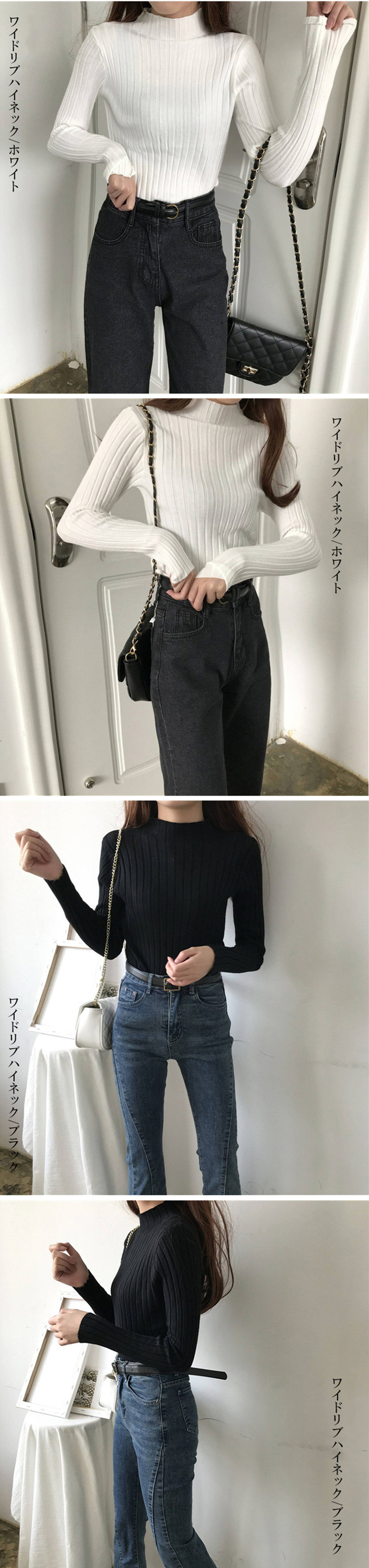 リブニット トップス タートルネック
