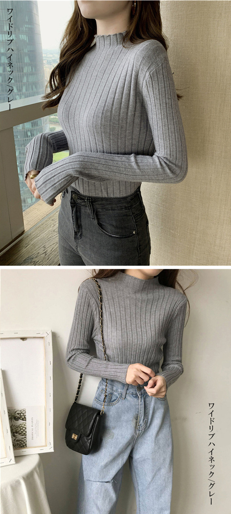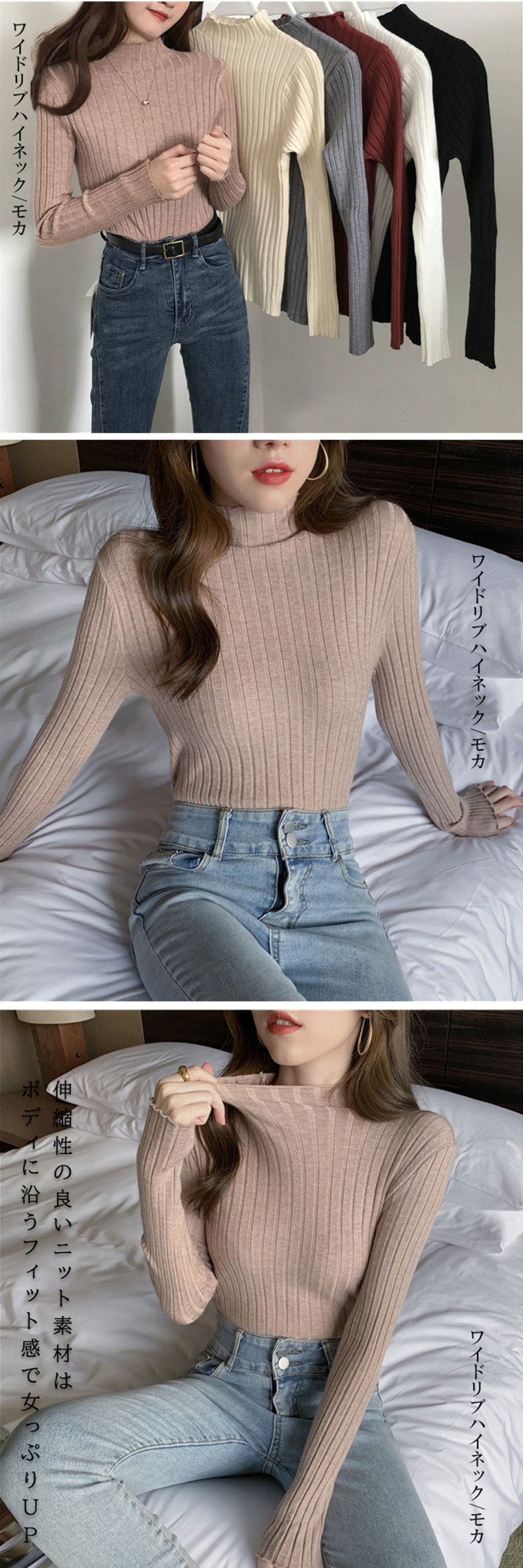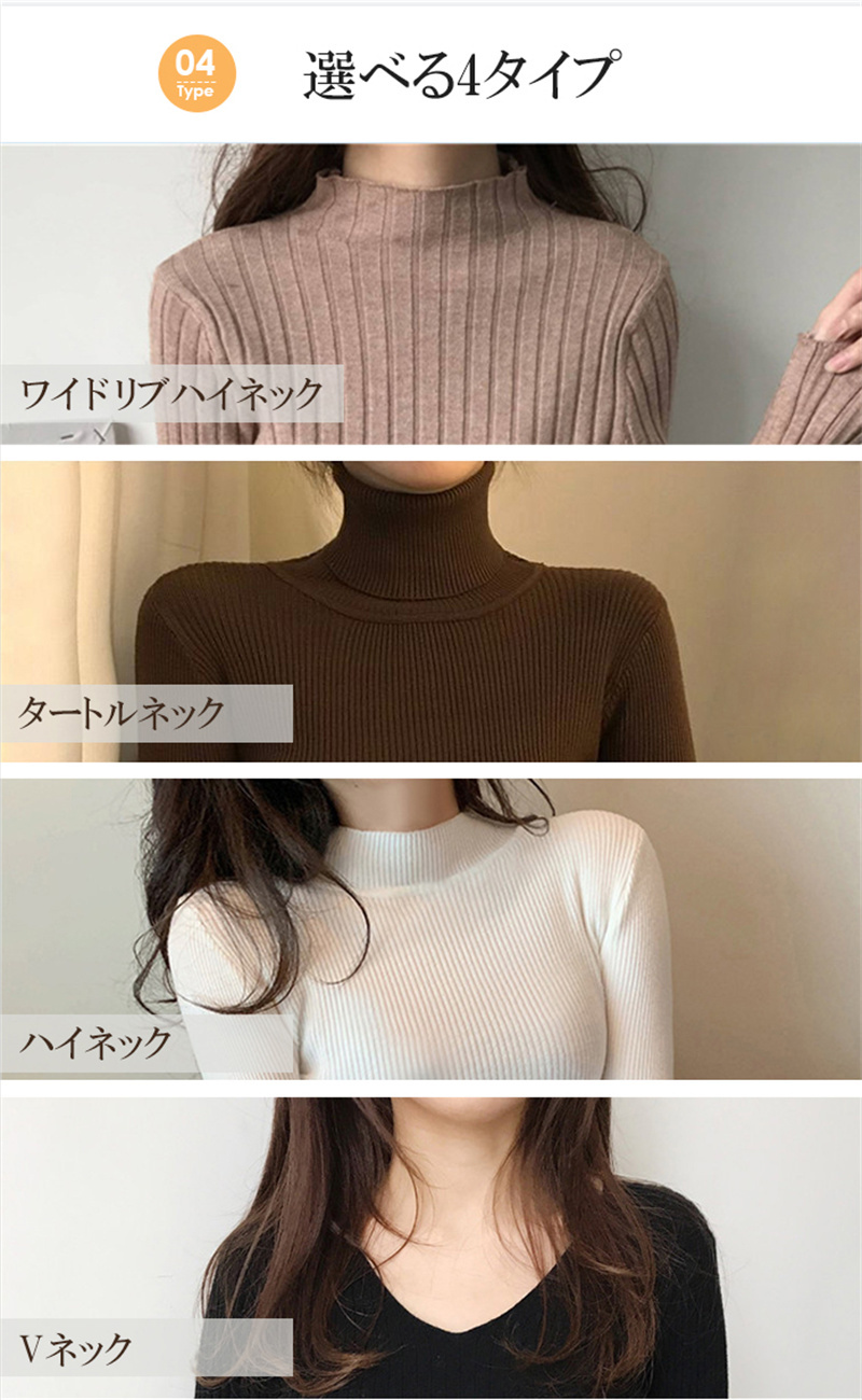 リブニット4種類 トップス タートルネ