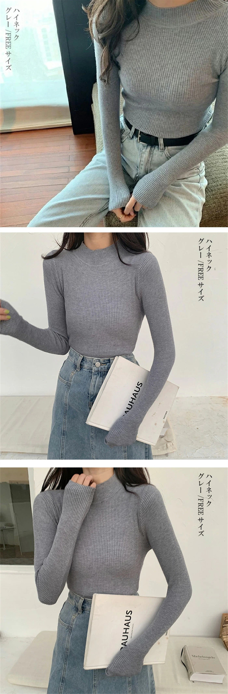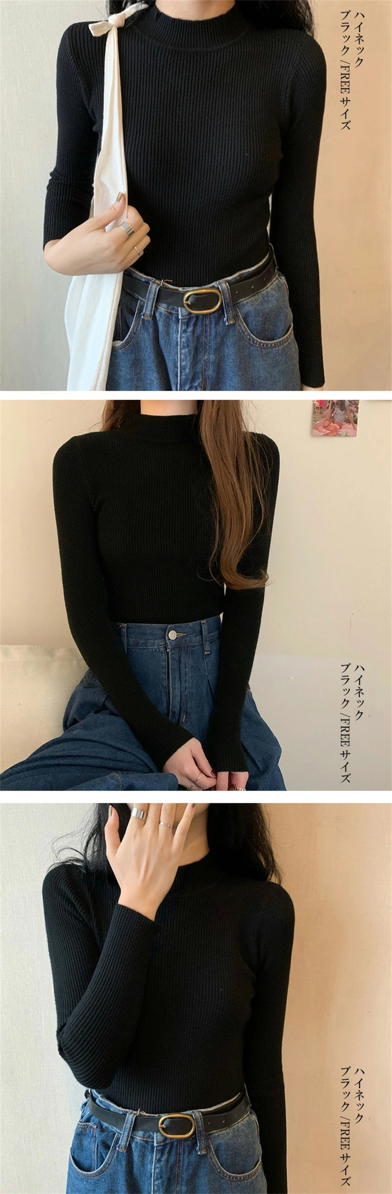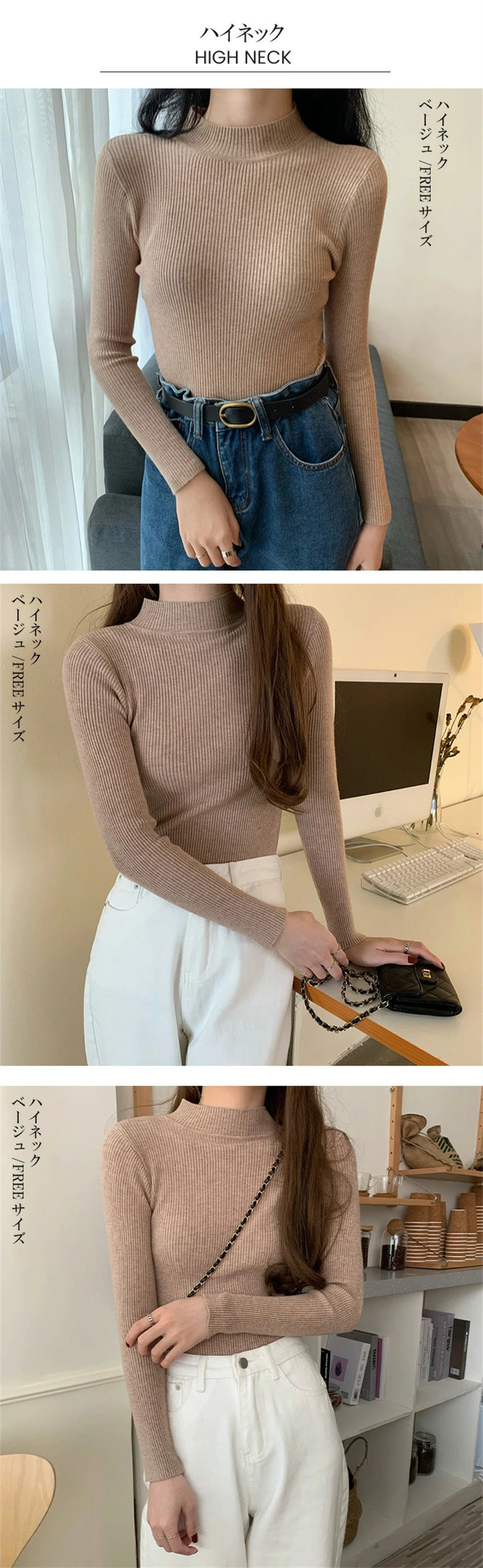 SIZE: ワイドリブハイネック/FREEサイズ Vネック/FREEサイズ ハイネック/FREEサイズ タートルネック/FREEサイズ