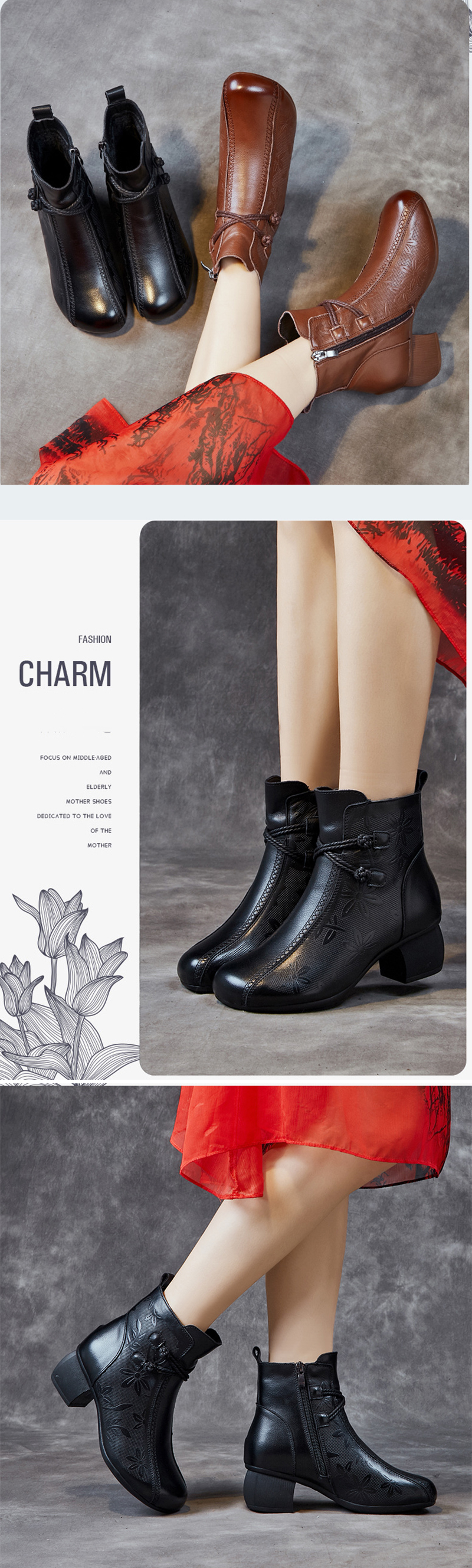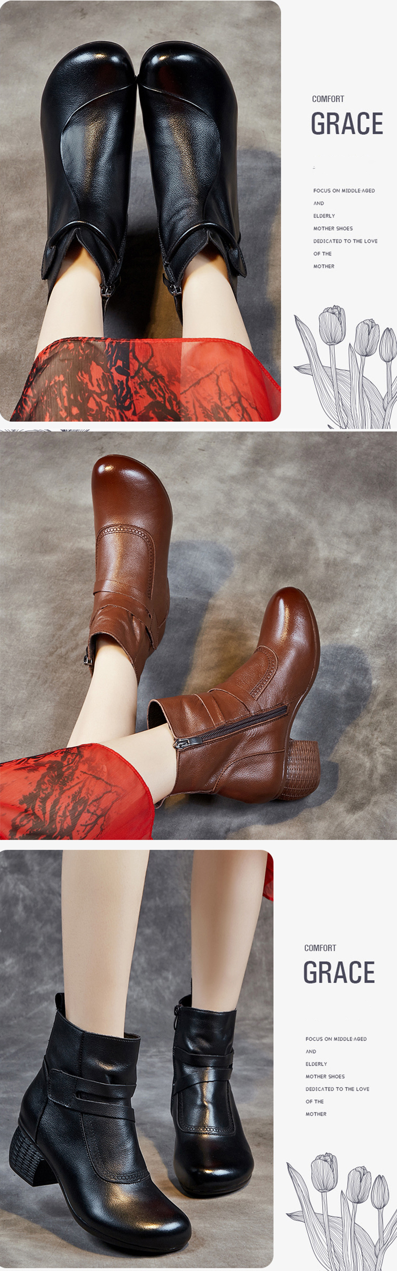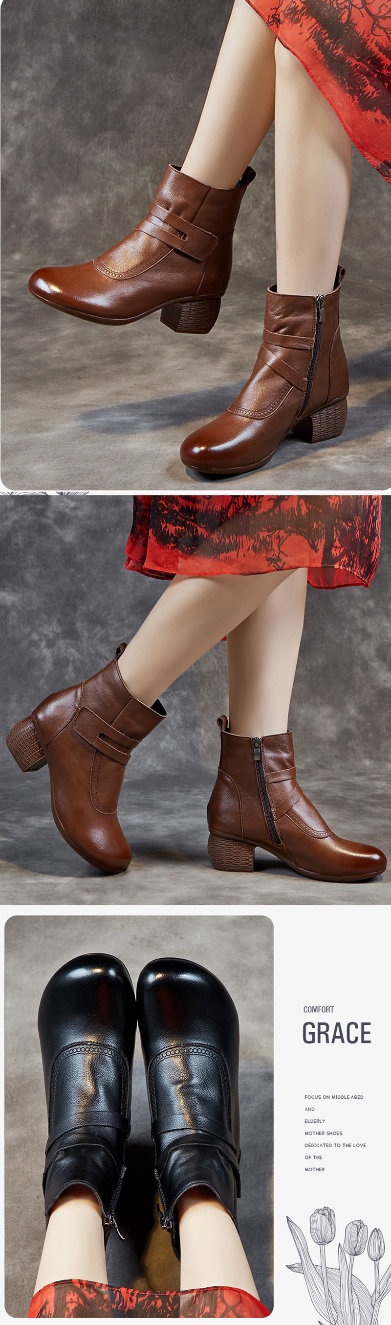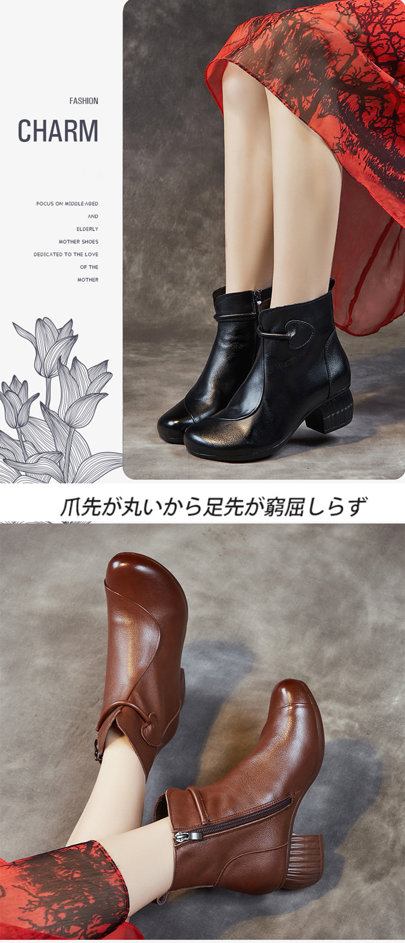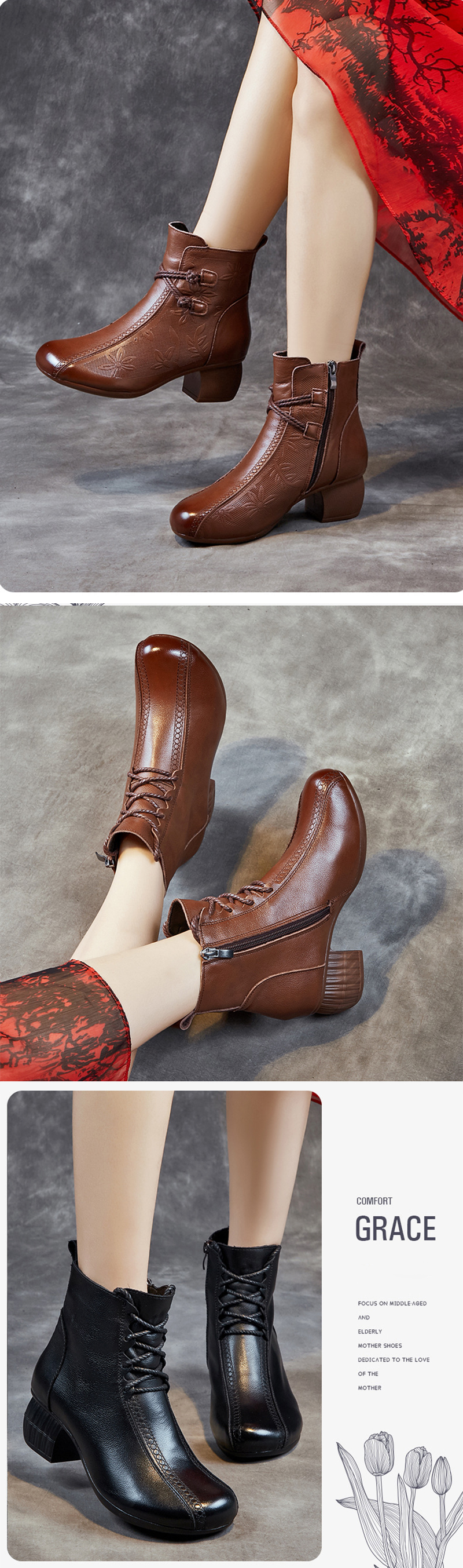 本革 レディース レースアップブーツ
