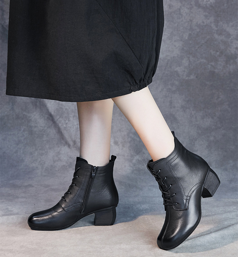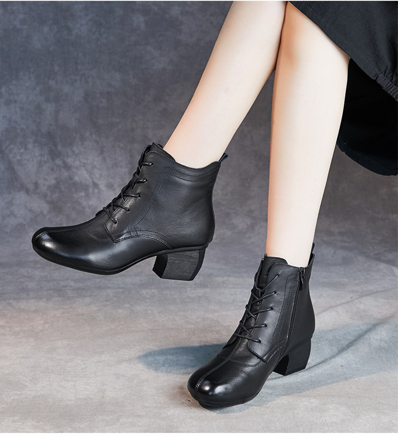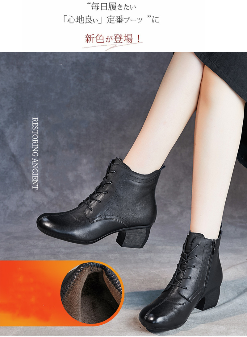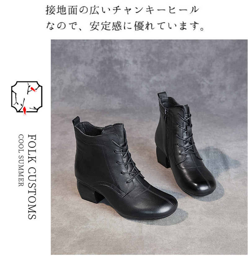 本革 レディース レースアップブーツ