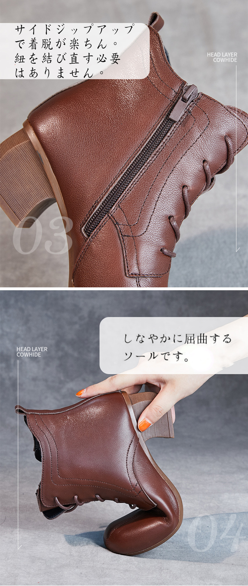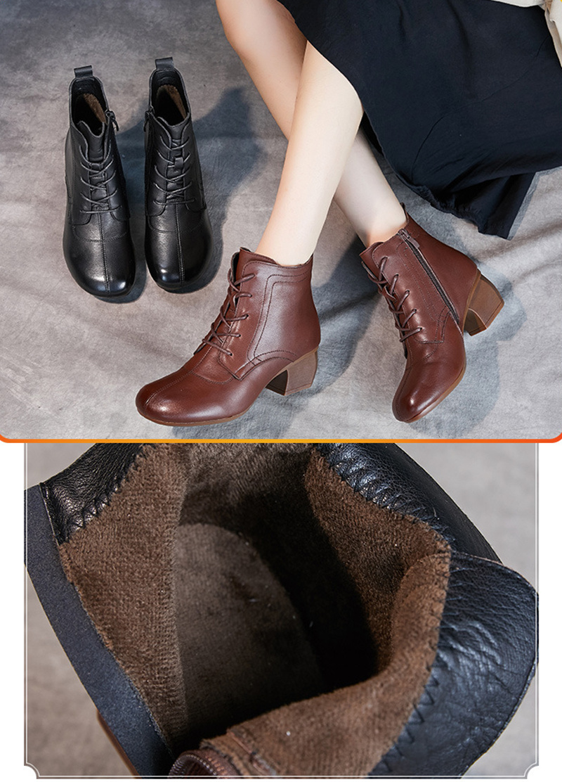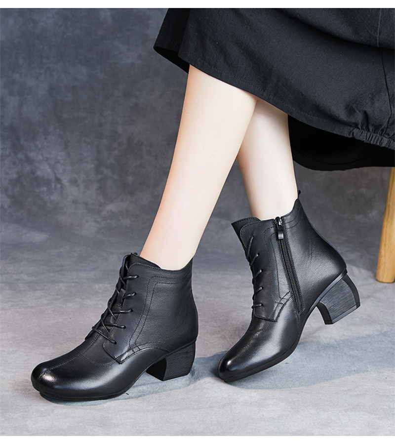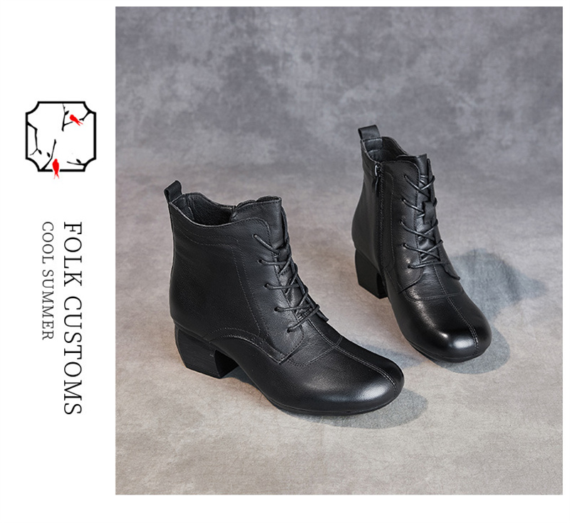 本革 レディース レースアップブーツ