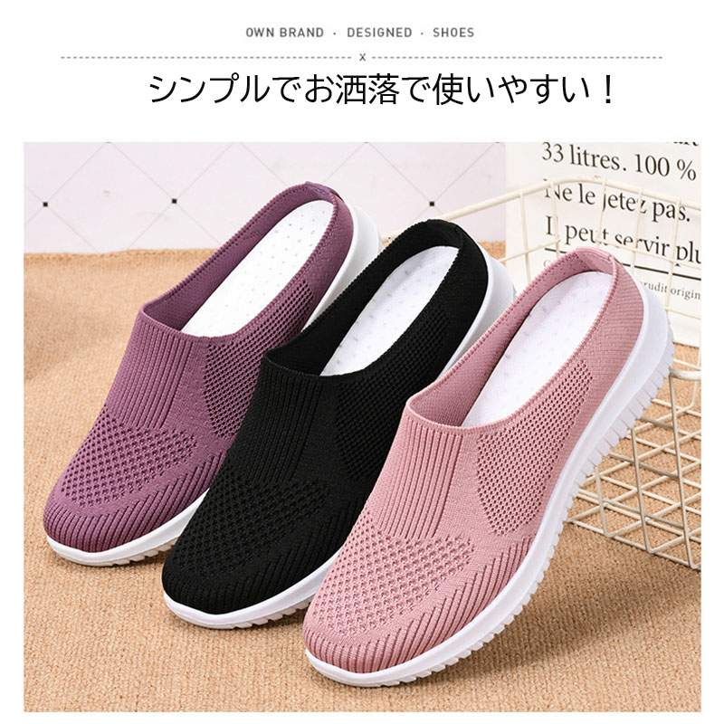 ポインテッドトゥミュール ヒール レディース スリッポンサンダル ニット 夏 22~26cm シンプル ポインテッドトゥ スクエアトゥ 美脚 フラットタイプでさらっと履ける シューズ ミュール スリッ