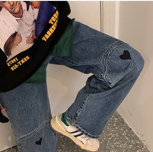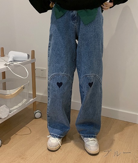 デニムパンツ ビジュー付き