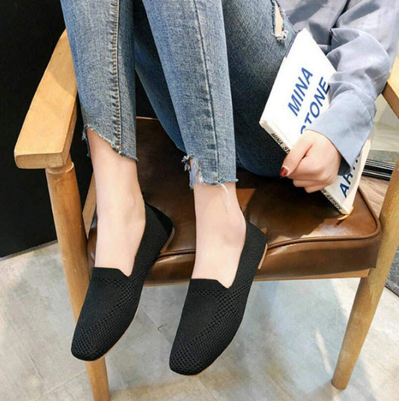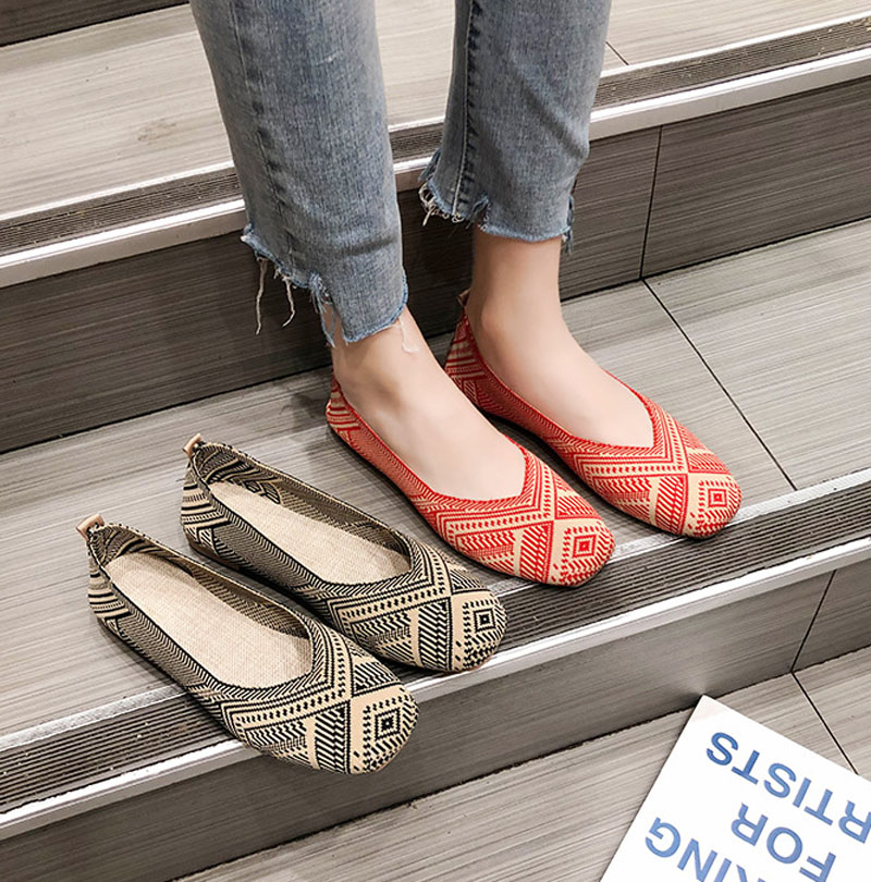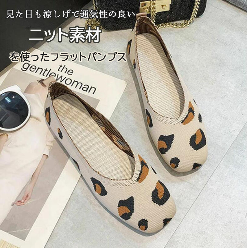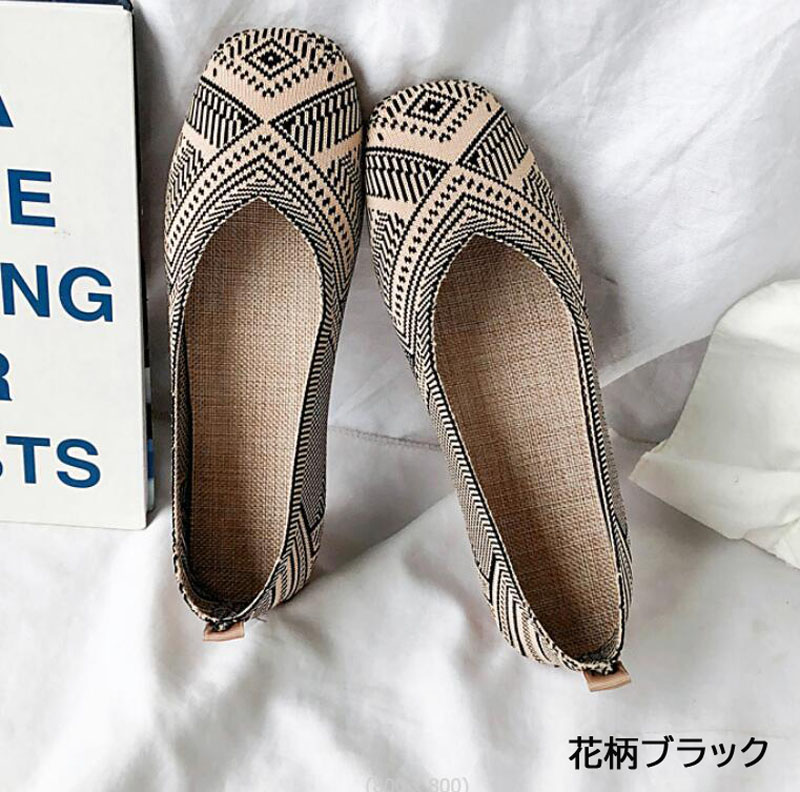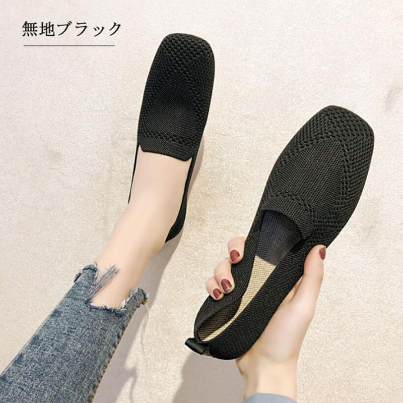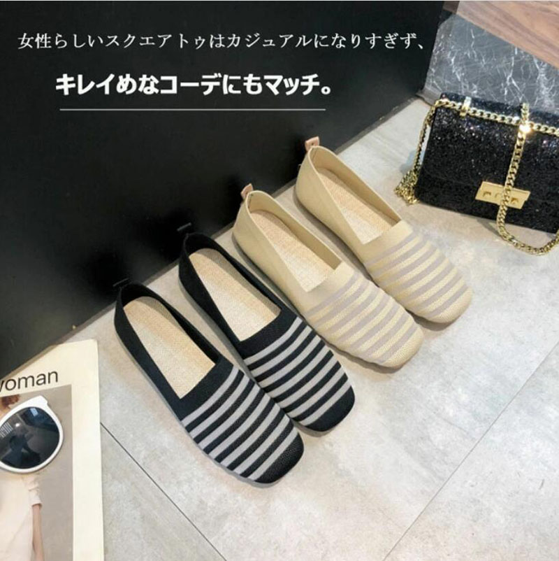 ニット素材のラウンドトゥフラットシュー