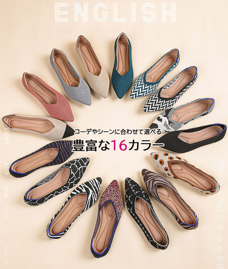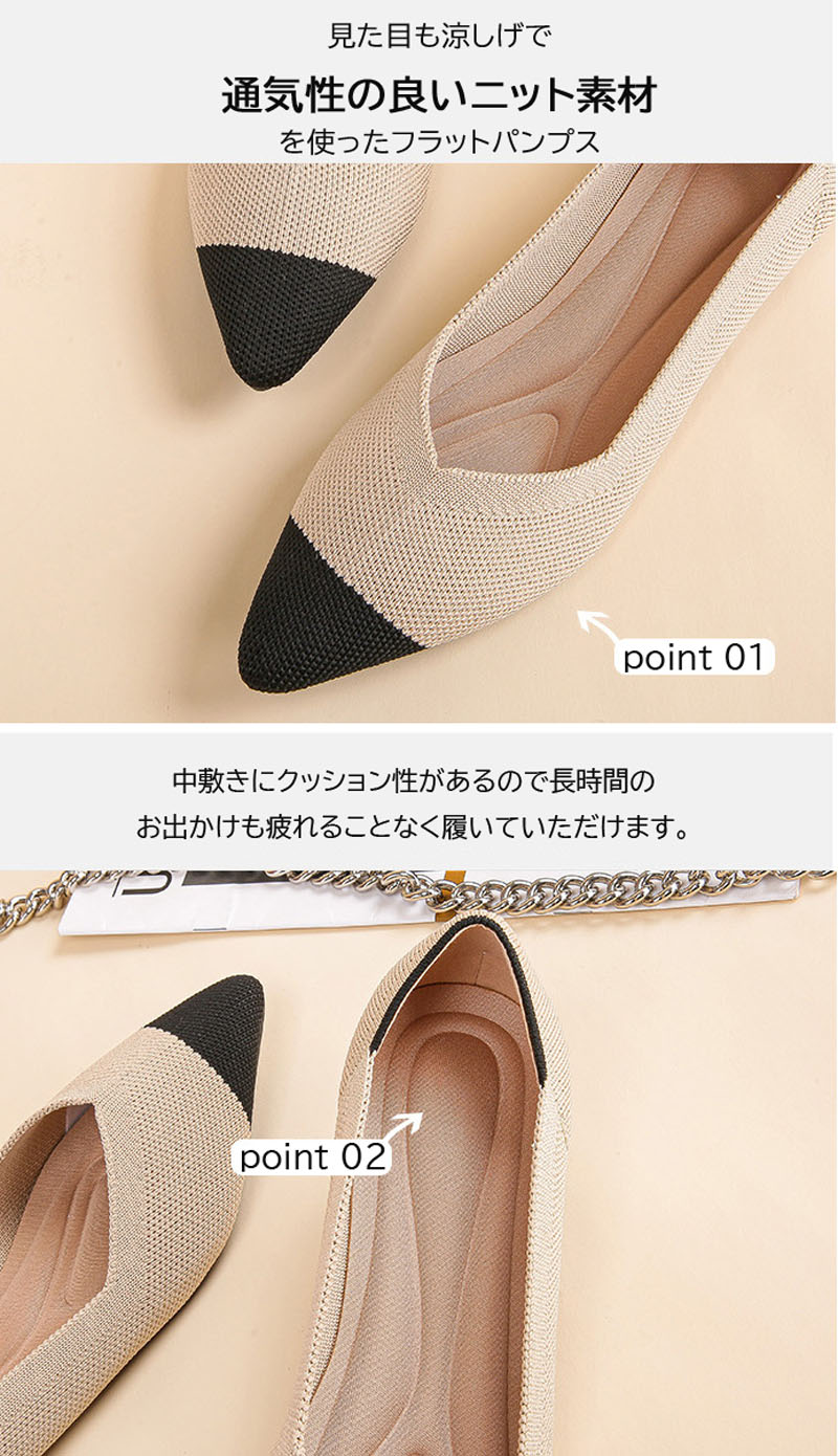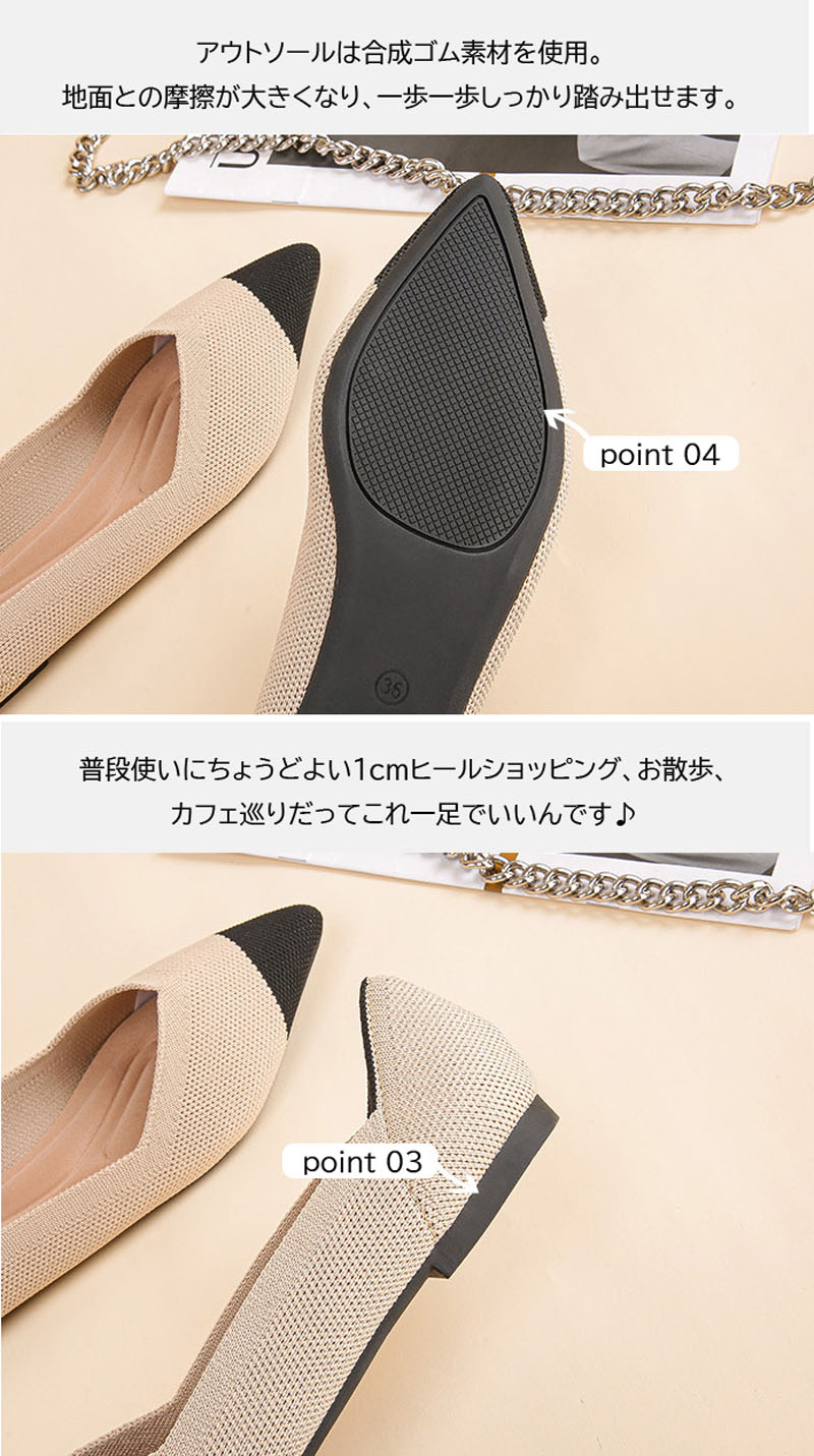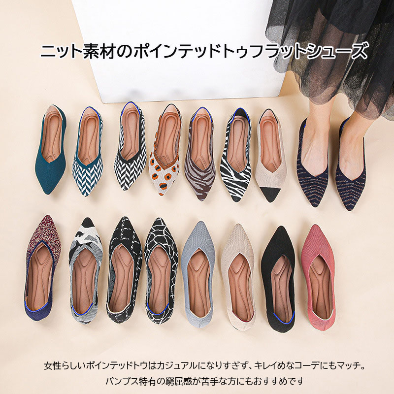 ニット素材のポインテッドトゥフラットシ