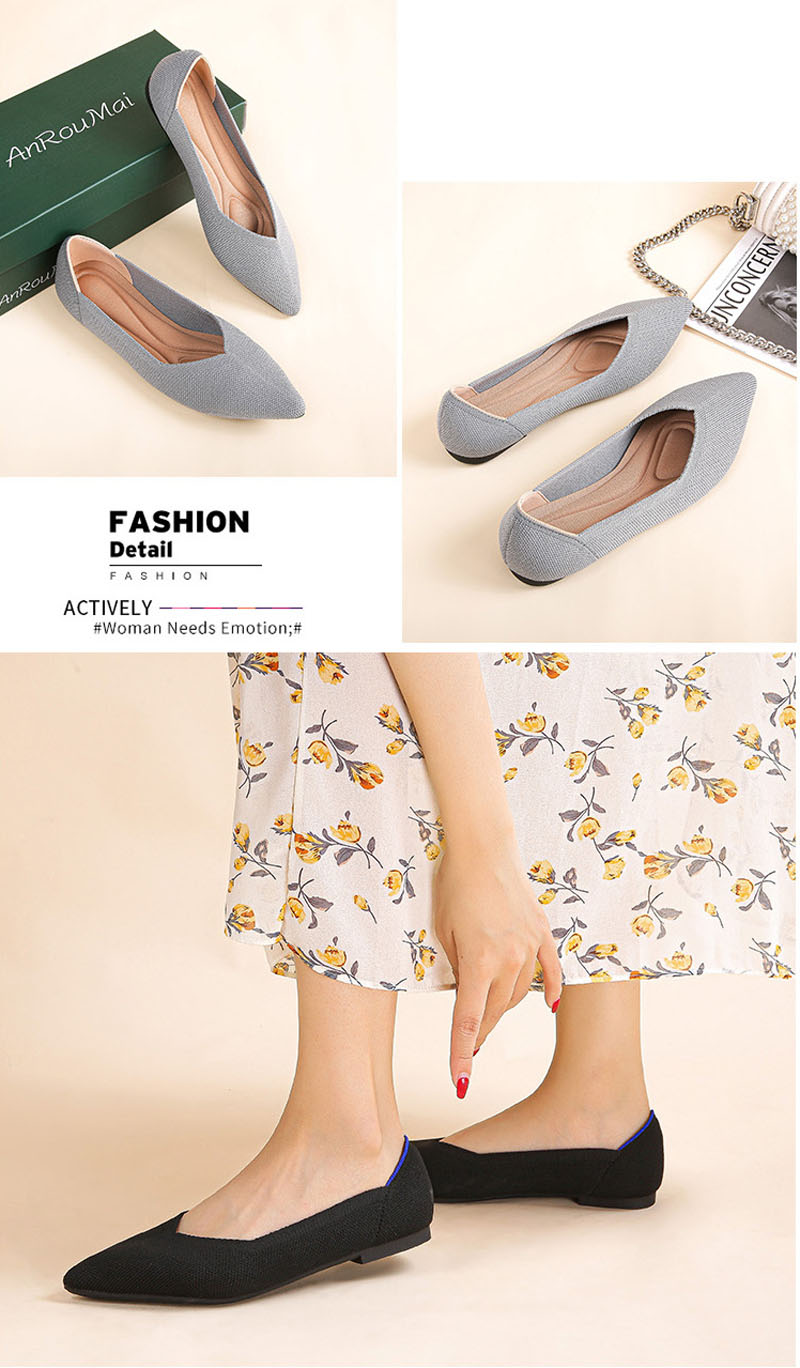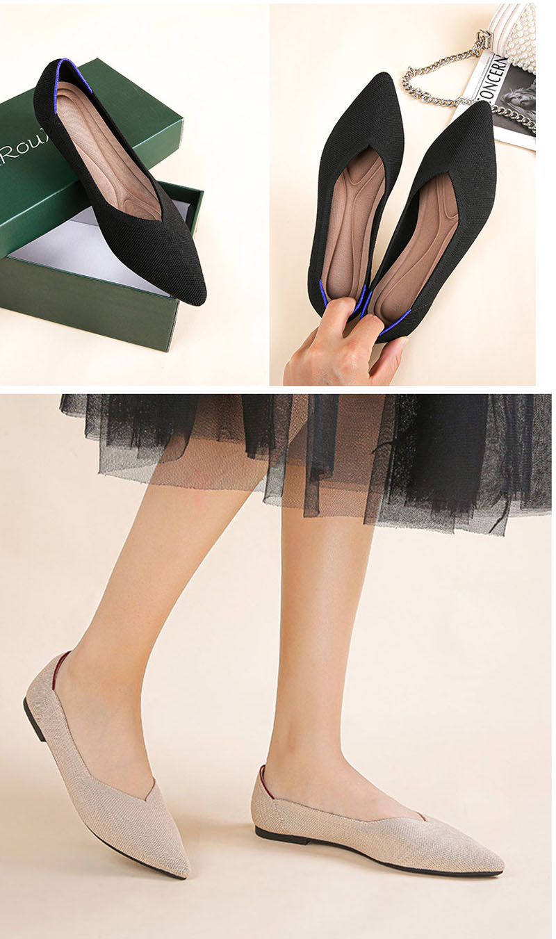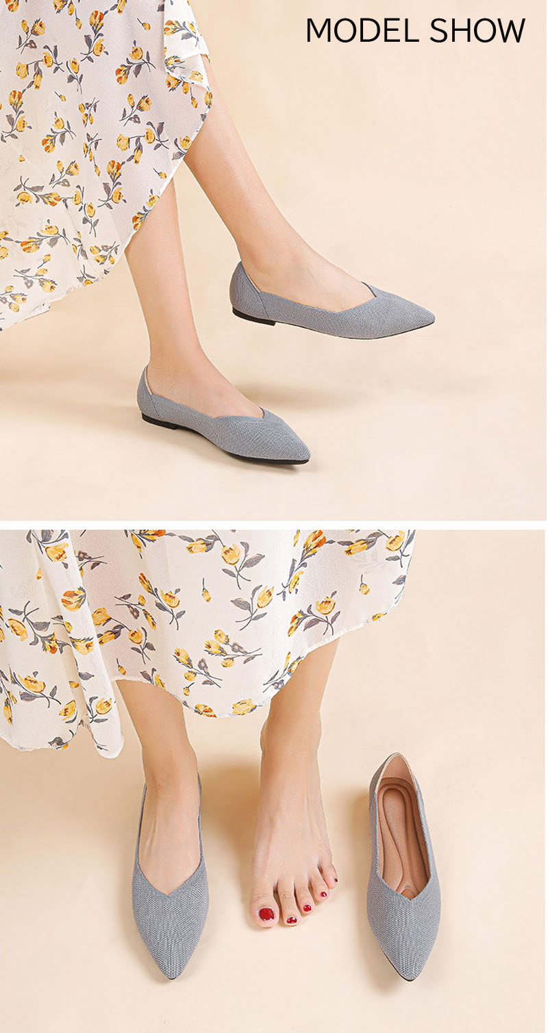 ニット素材のポインテッドトゥフラットシ