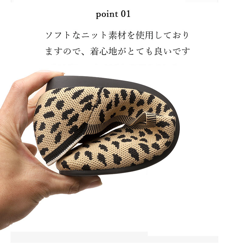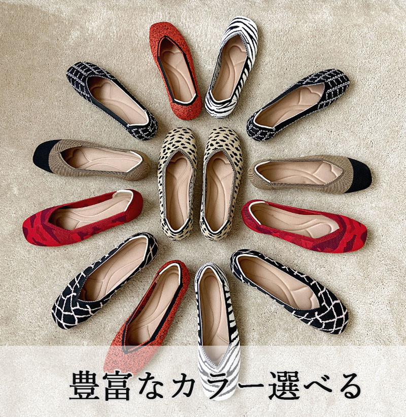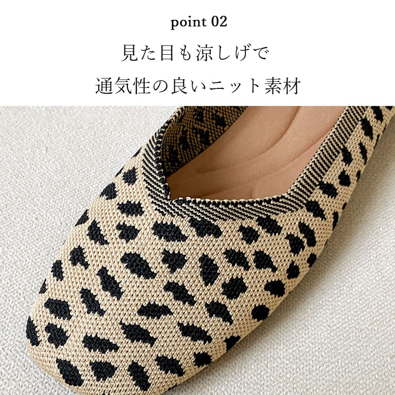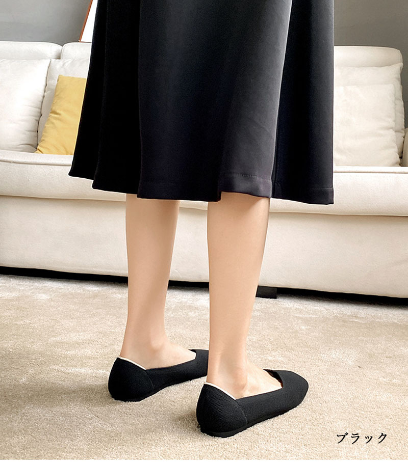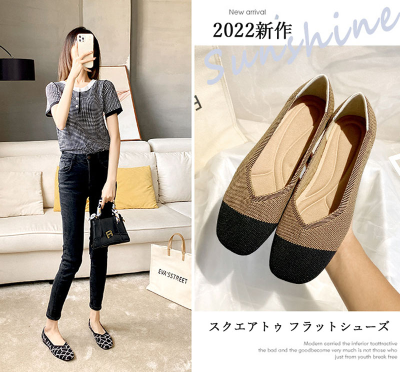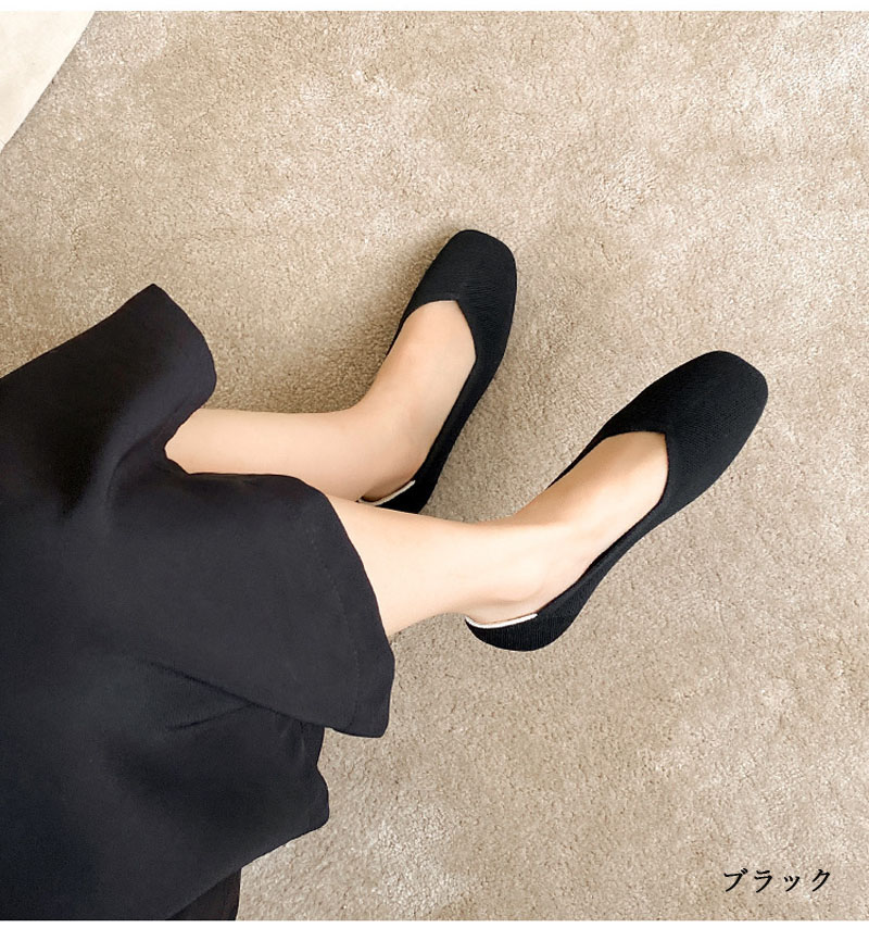 ニット素材のスクエアトゥフラットシュー